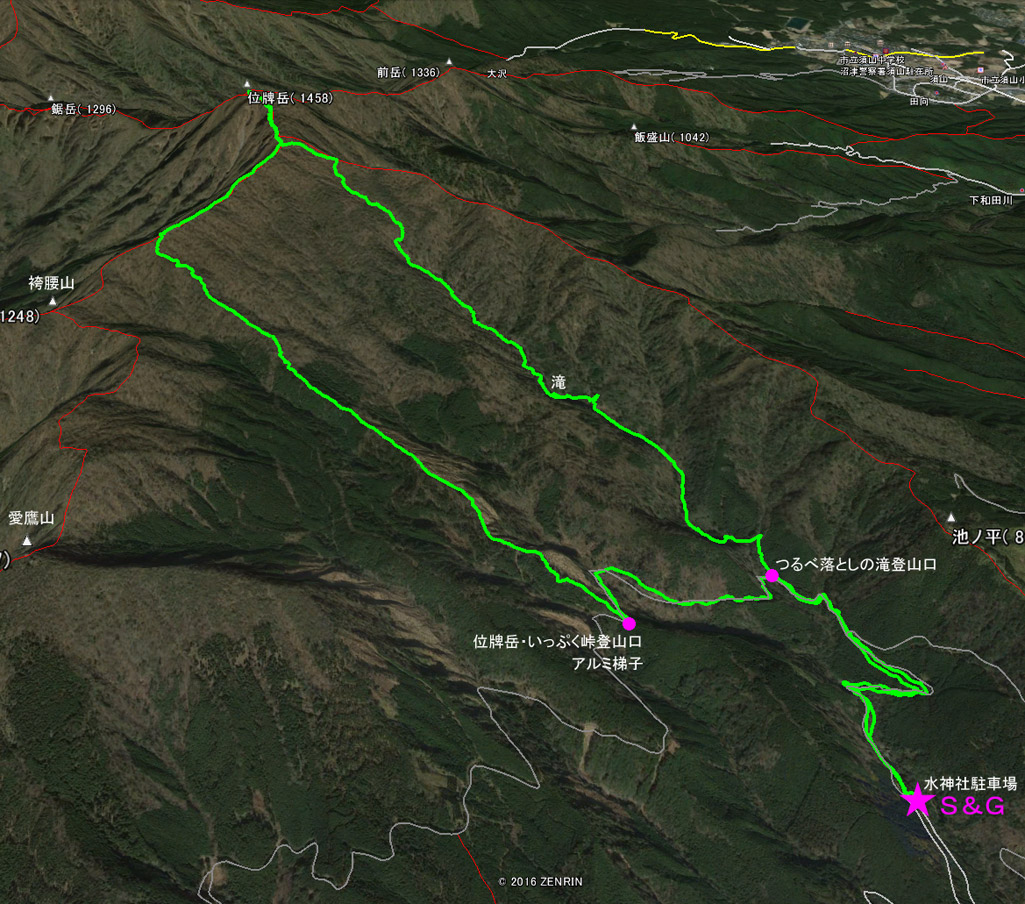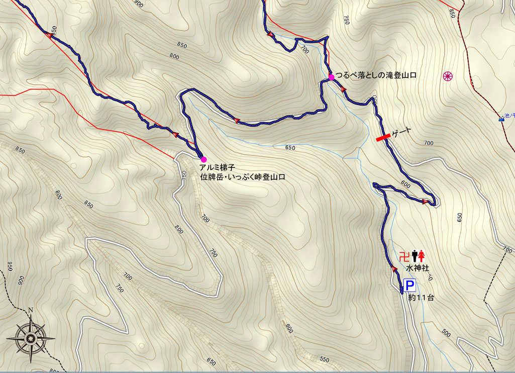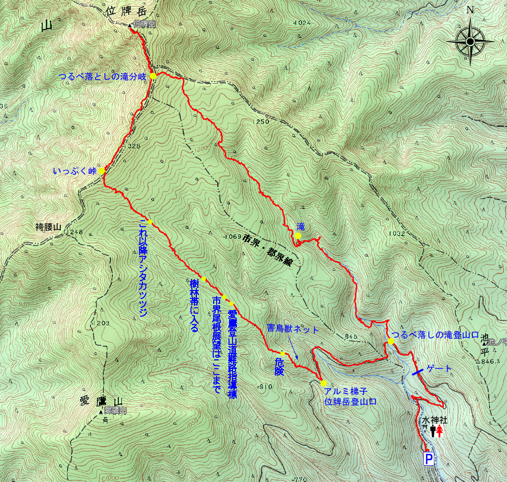 位牌岳&いっぷく峠登山口(アルミ梯子)までの拡大図 | ||||