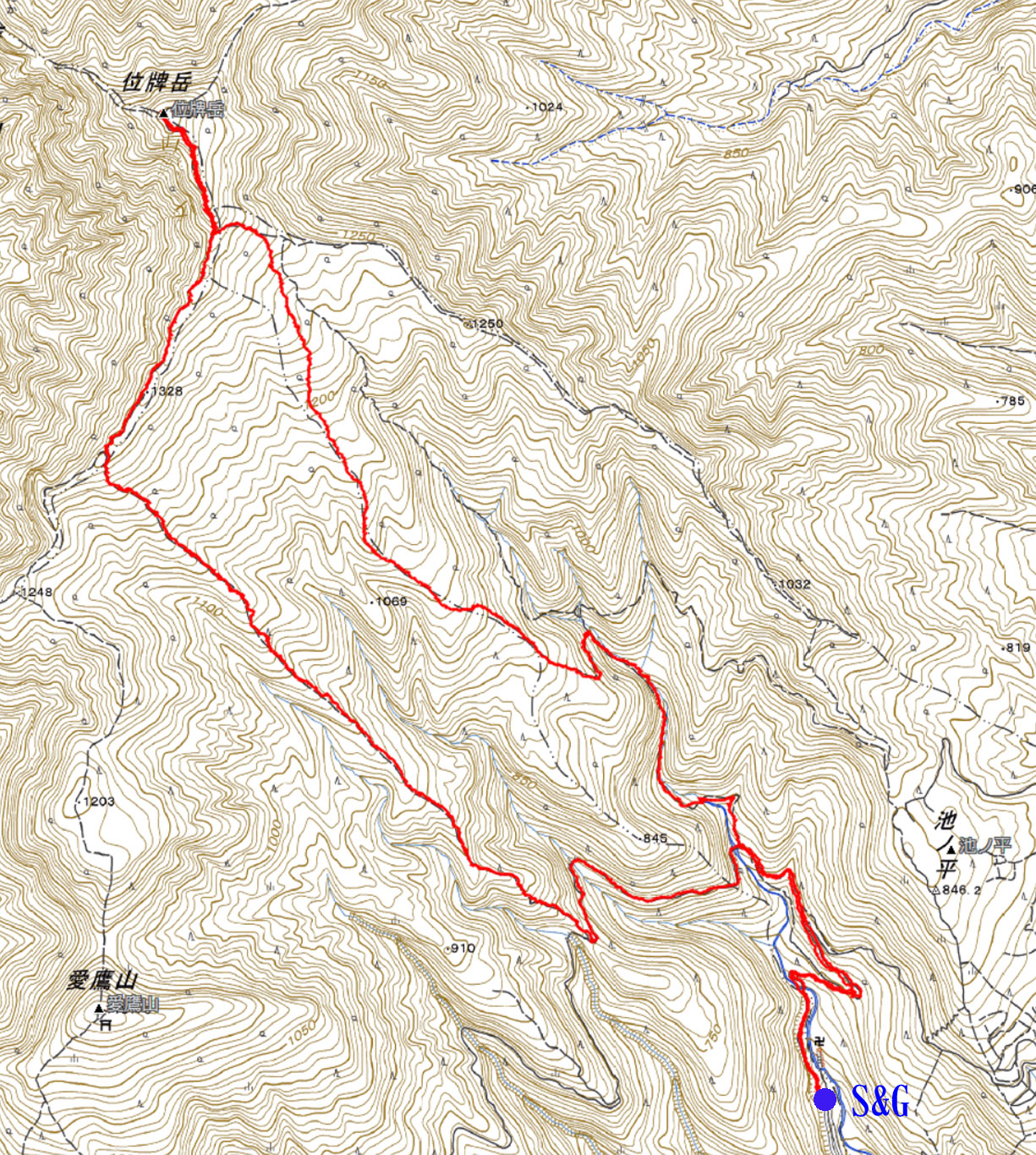 位牌岳ルート地図 https://www.yamareco.com/modules/yamareco/detail-5519845.html |