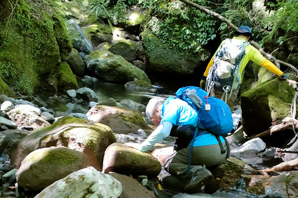 爺、恒例のクールダウン中 | つるべ落としの滝入口に下山 | |||