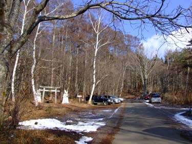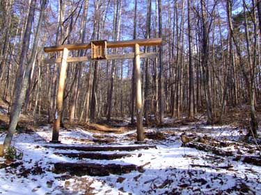 飯綱山南登山道登山口 | 《写真にマウスを》 林道北側に新しい奥宮一の鳥居が建てられた |