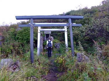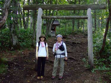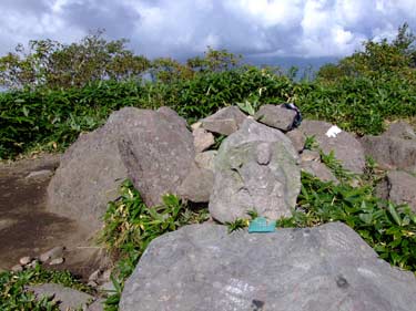南峰直下の鳥居と石祠 | 登りきると飯綱山南峰だ | |||
