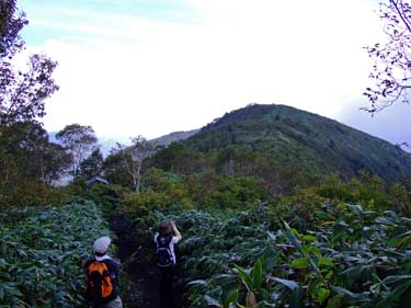空が開けはじめ稜線が近づく | 稜線に出ると視界が広がる | |||