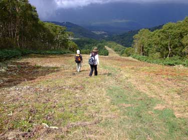 鞍部を歩く | 瑪瑙山に架かるスキーリフト | |||