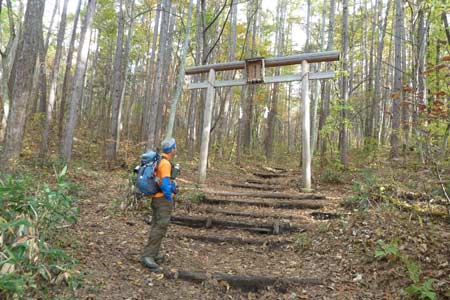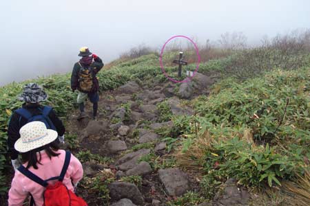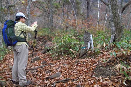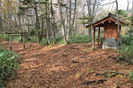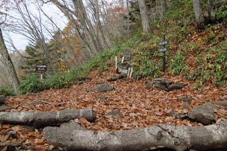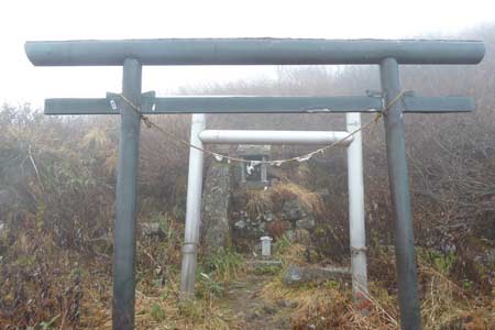 西登山道分岐点 | 南峰手前の石祠 | |||