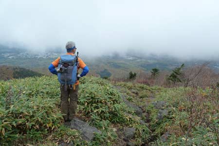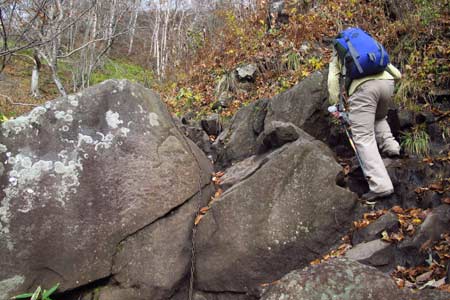北アルプスや戸隠連峰は雲の中 | 石ゴロ地点を慎重に下る | |||