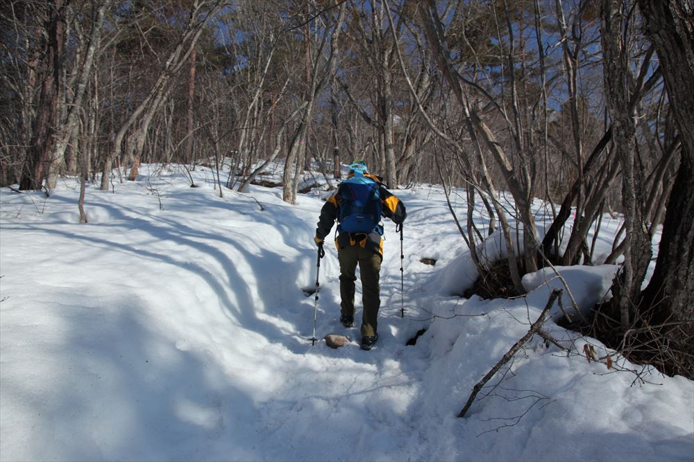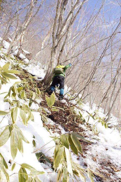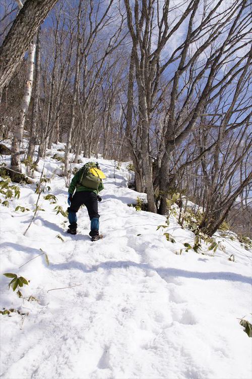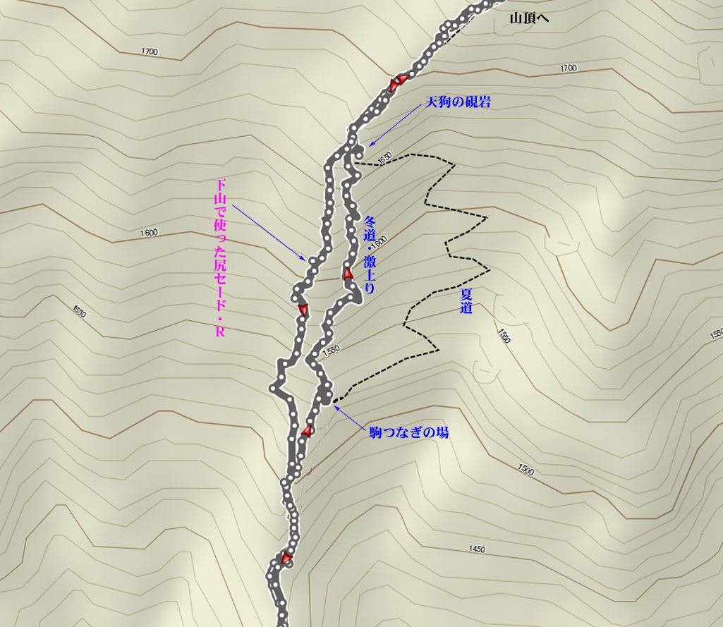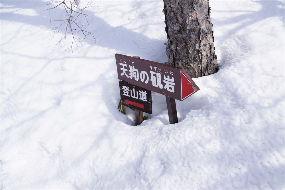 積雪時はここから天狗の硯岩まで激上りの冬道歩きとなる |