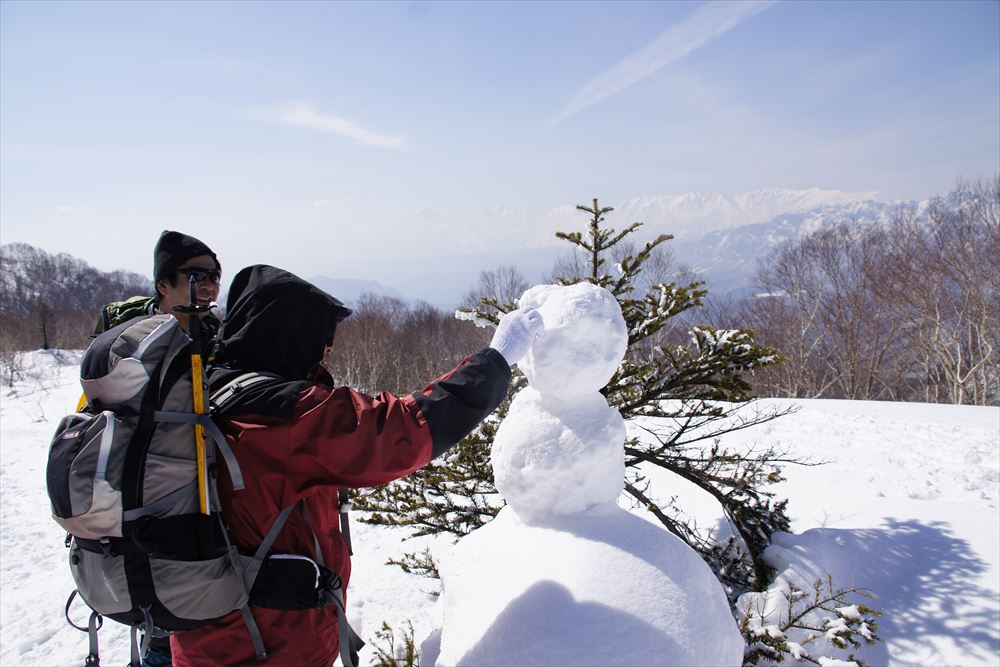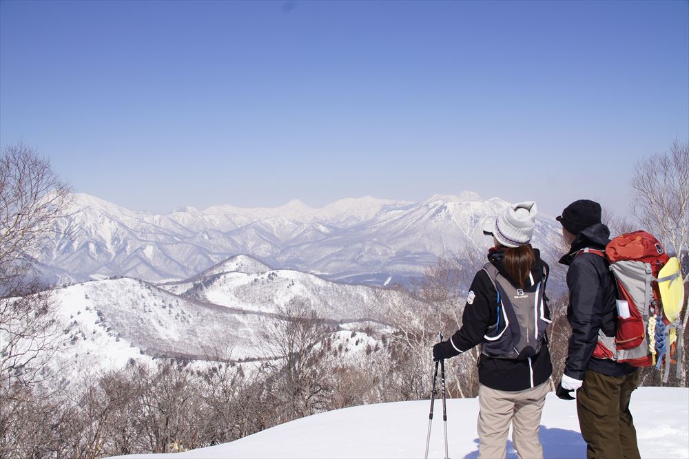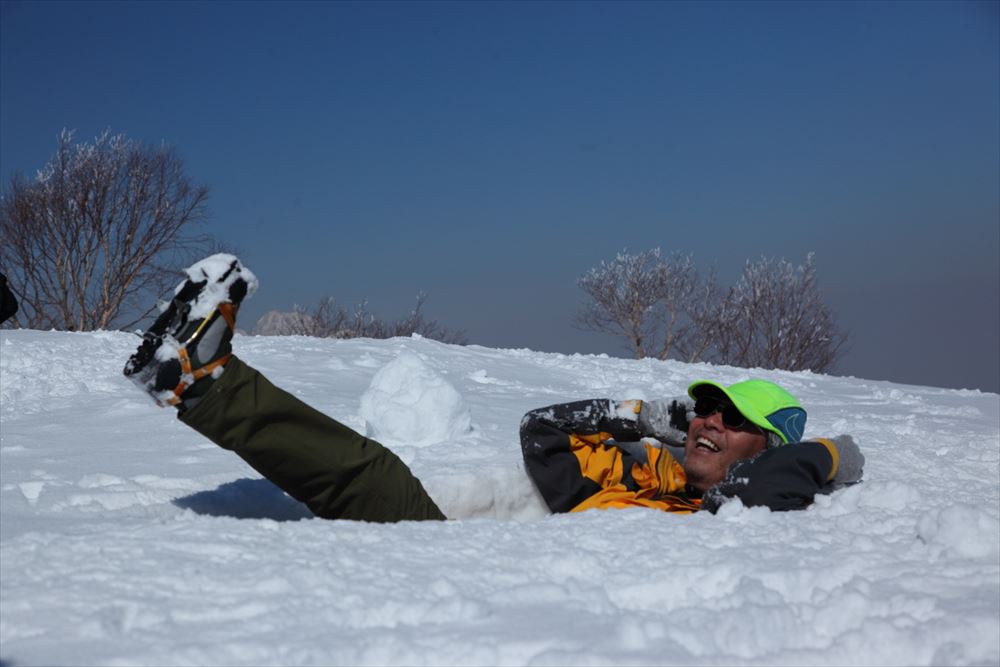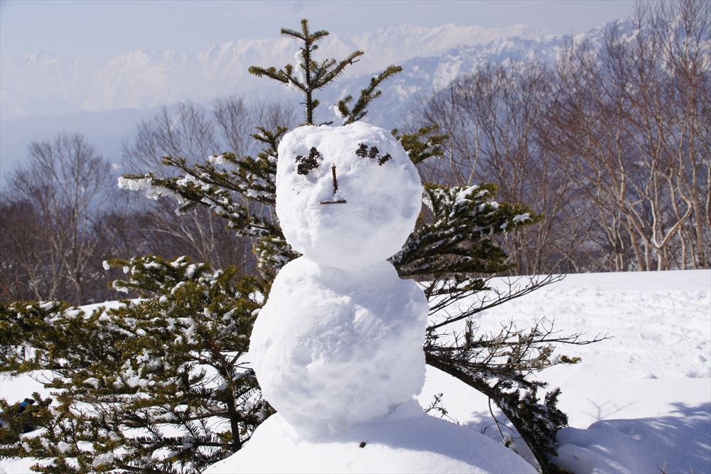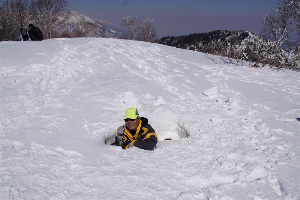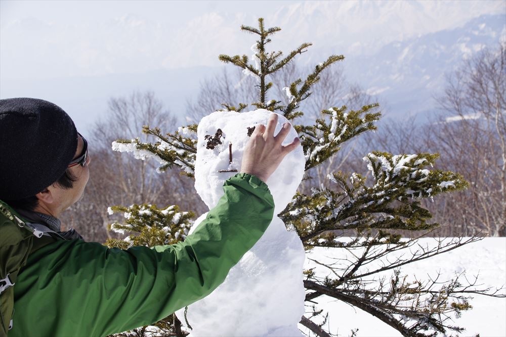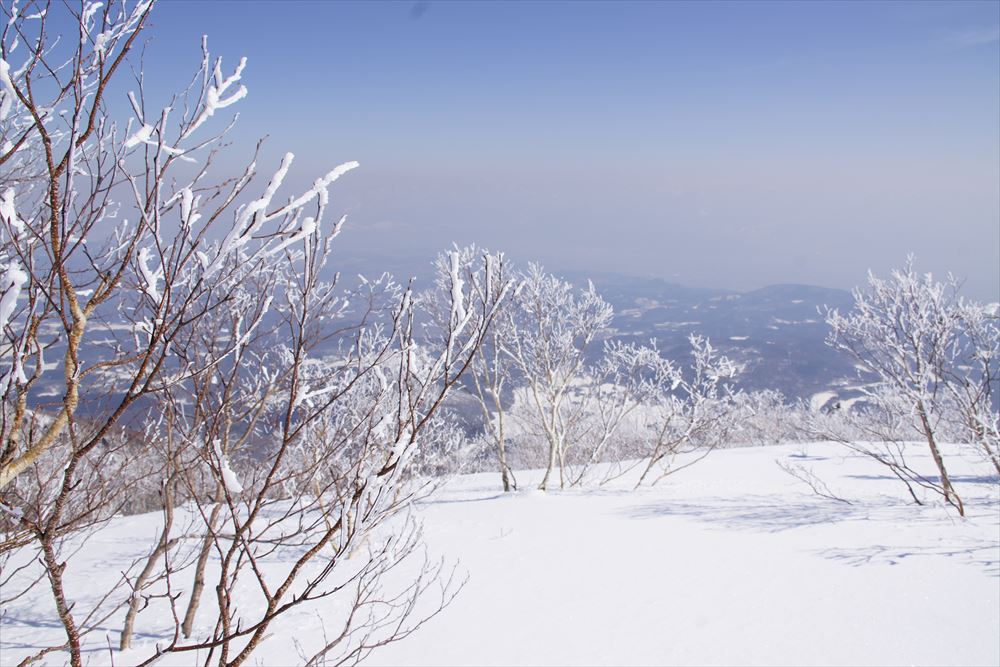 灌木が雪に埋もれる冬季限定森林限界で展望を楽しむ |