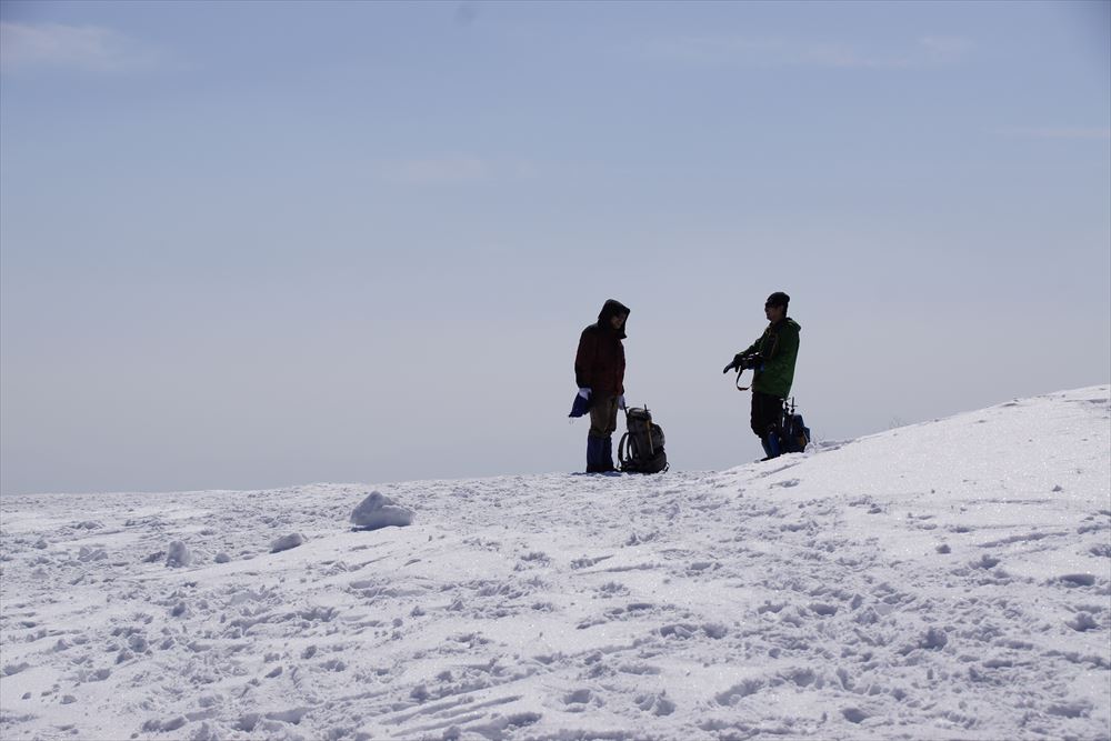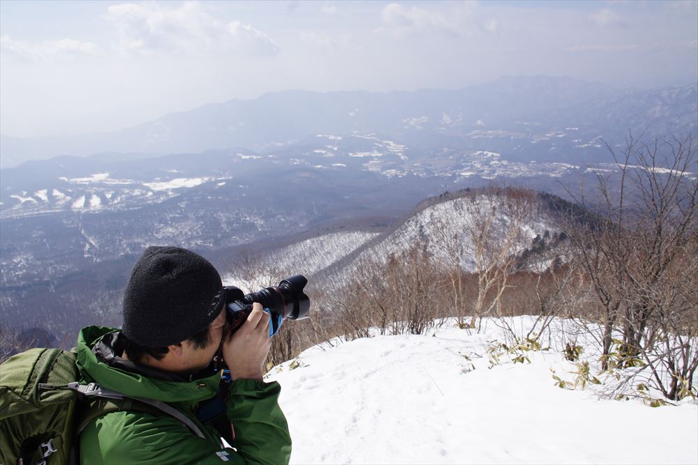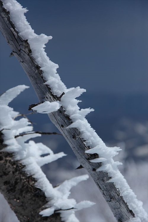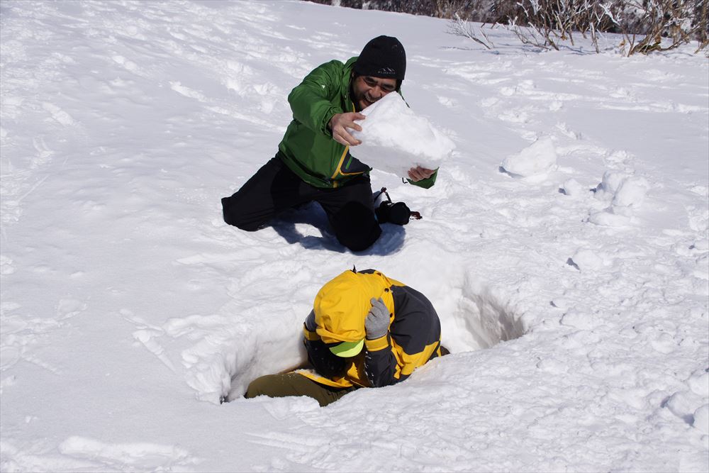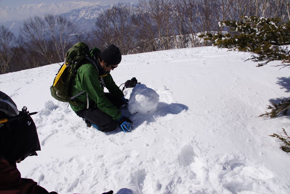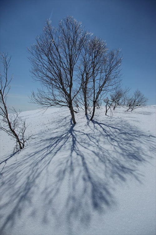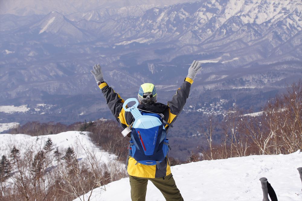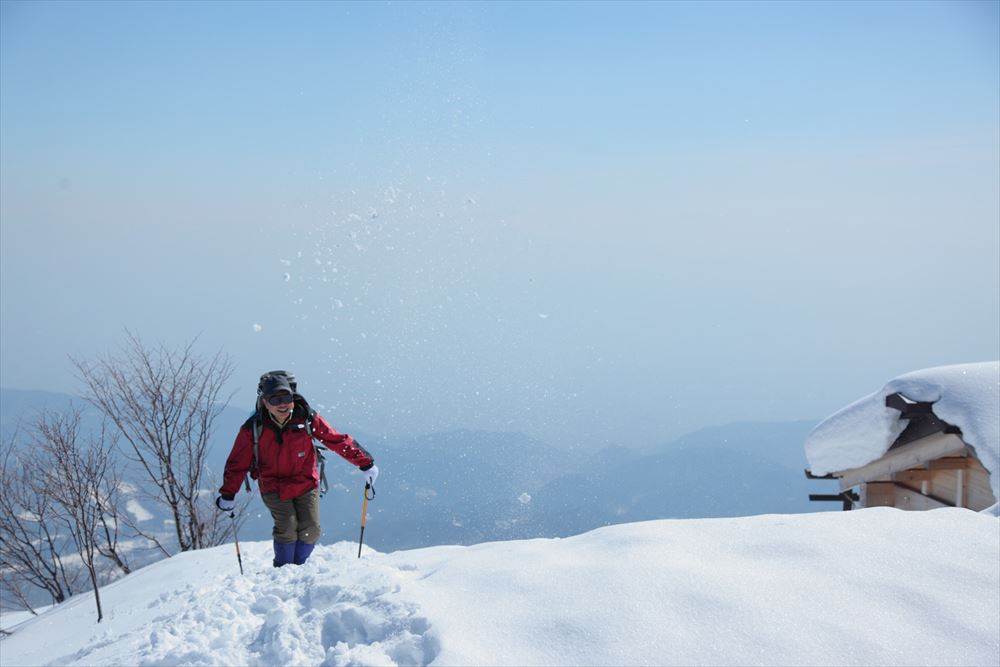 灌木が雪に埋もれる冬季限定森林限界で展望を楽しむ |