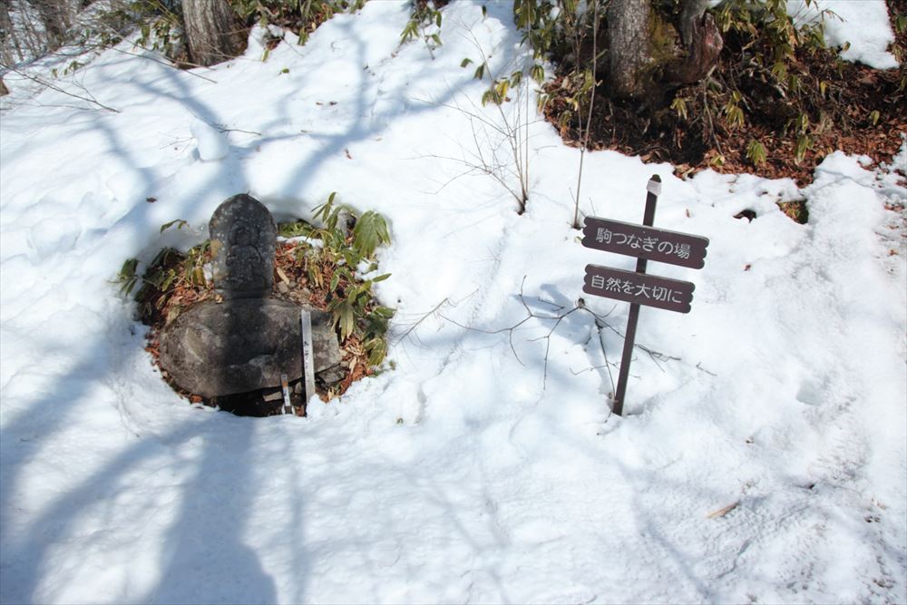 標高が高い場所に祀られている第13石仏地点でも積雪が30センチほどしかない |