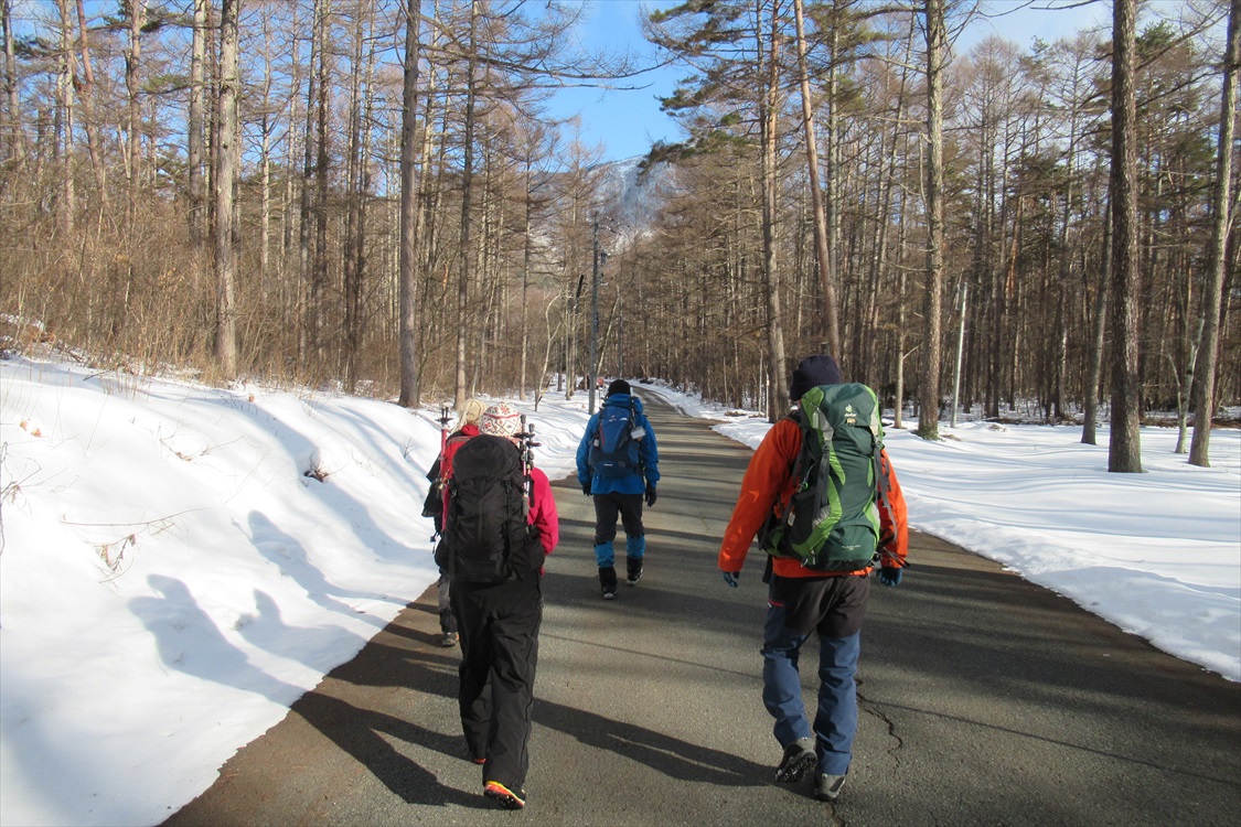 例年だとアイスバーンのツルテカになって登山道より危険度高い道路もご覧のようにカ〜ラカラ |