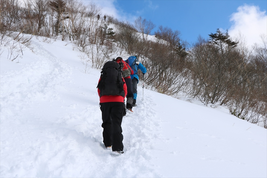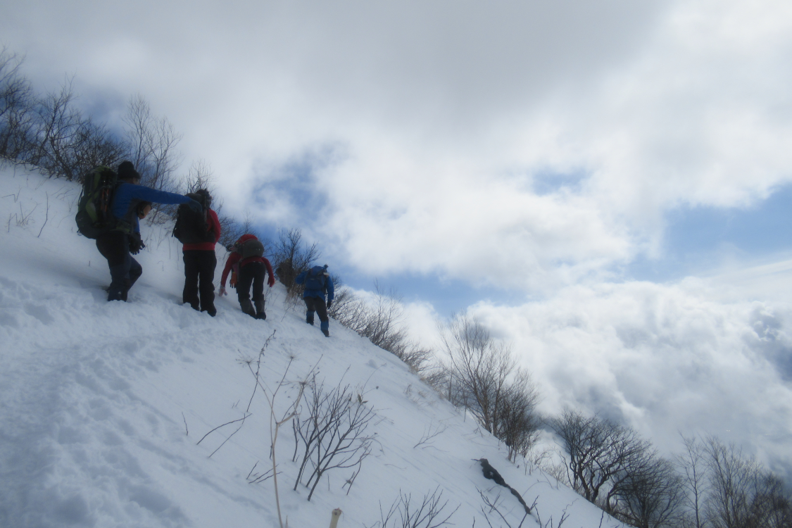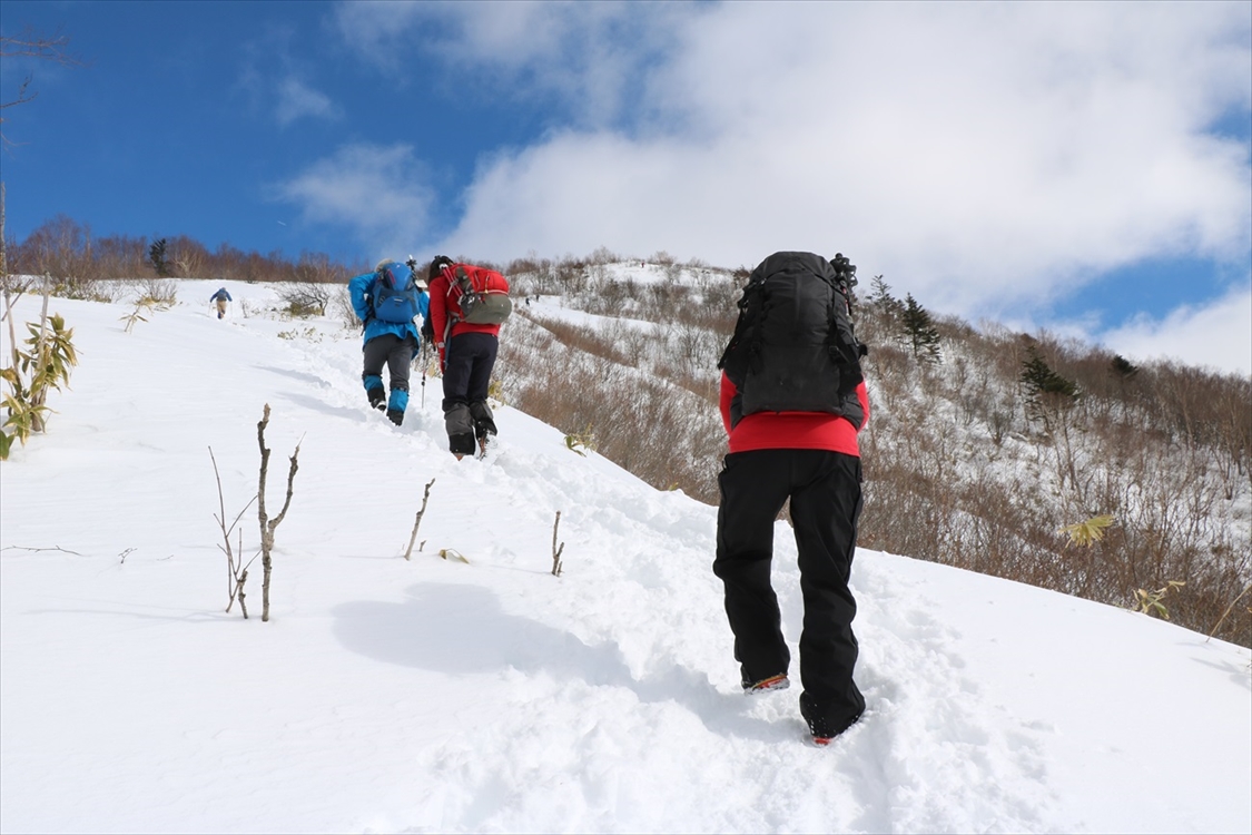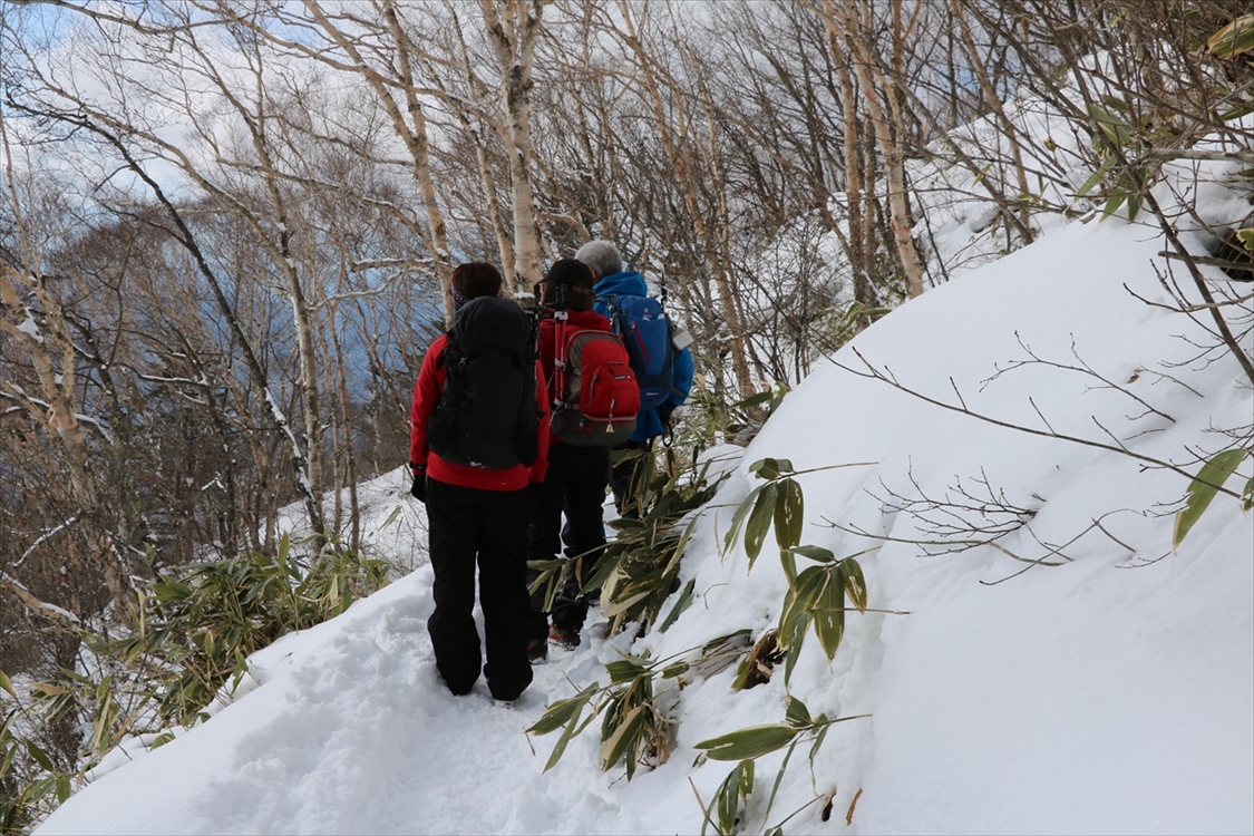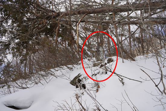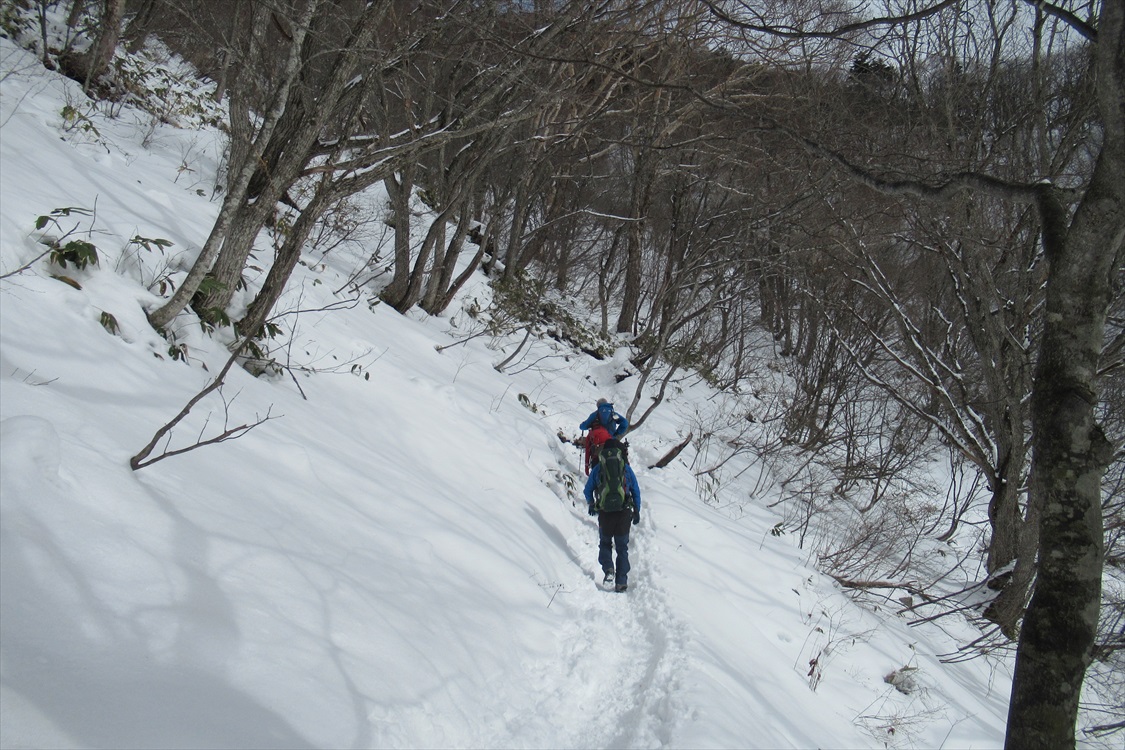 夏道の雪崩回避で冬はこの尾根を直登する冬道Rになるんですが・・・ |