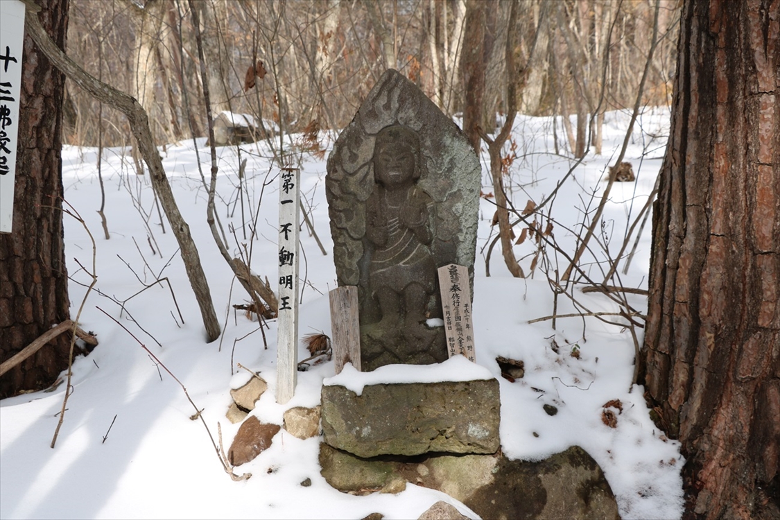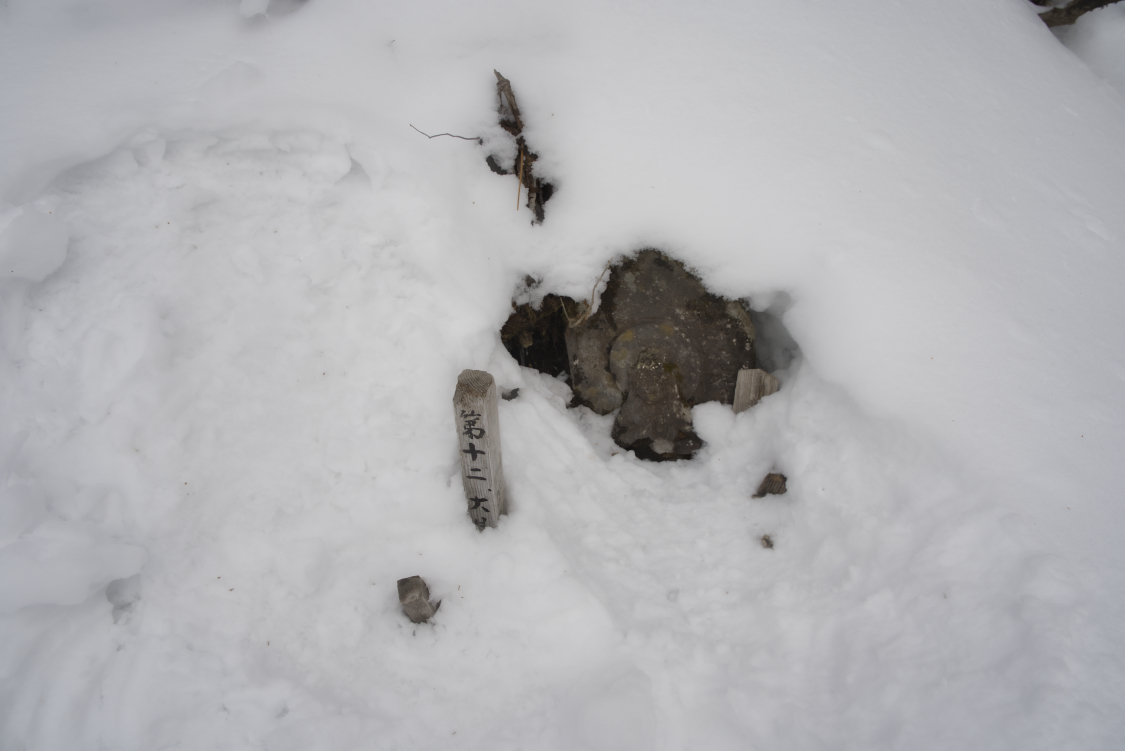 ここから天狗の硯石のチョイ上まで十三体(プラス馬頭観音)の石仏が祀られています |