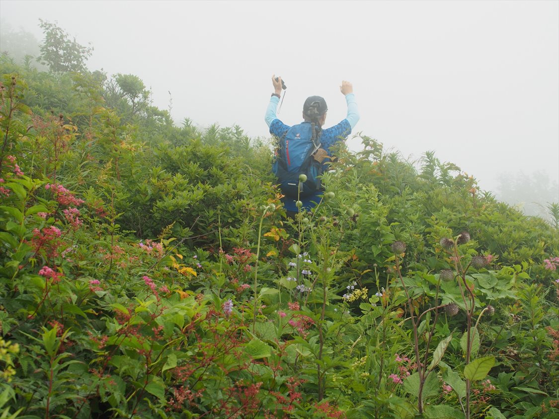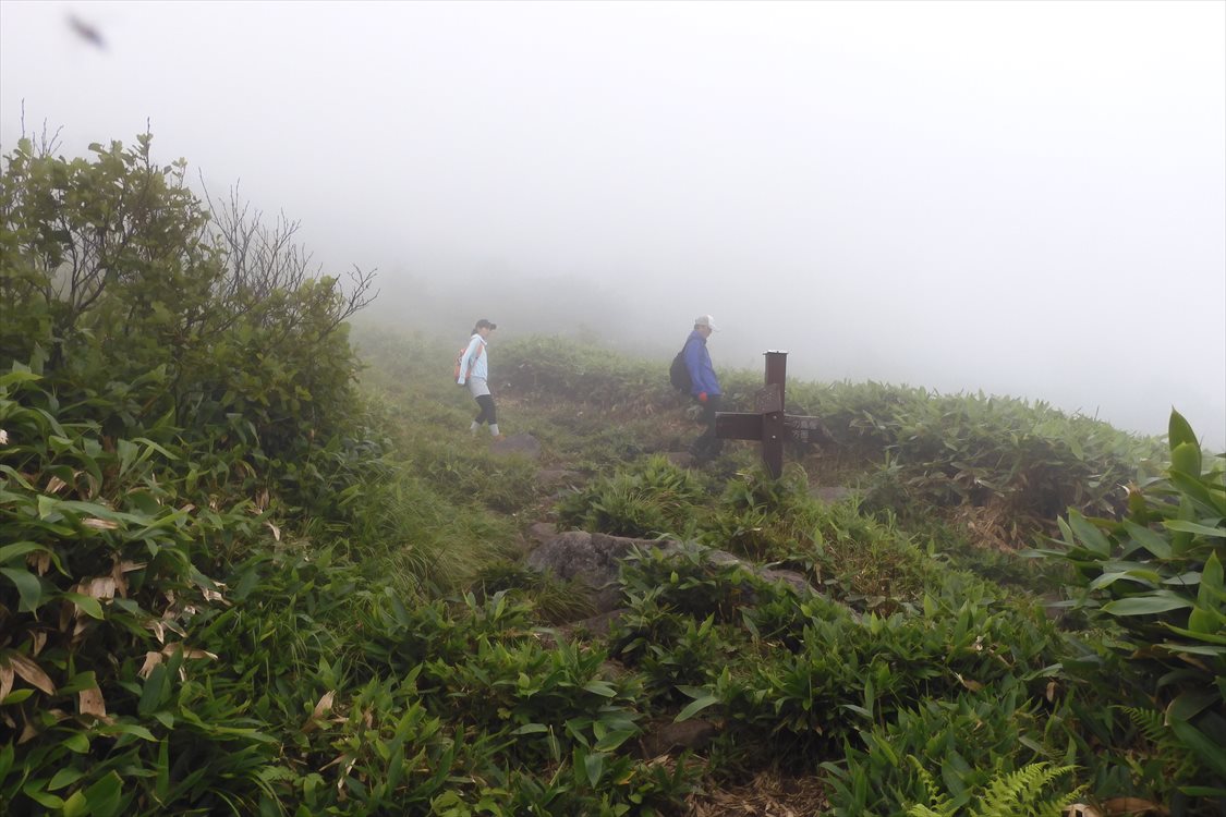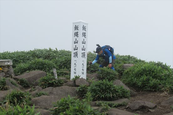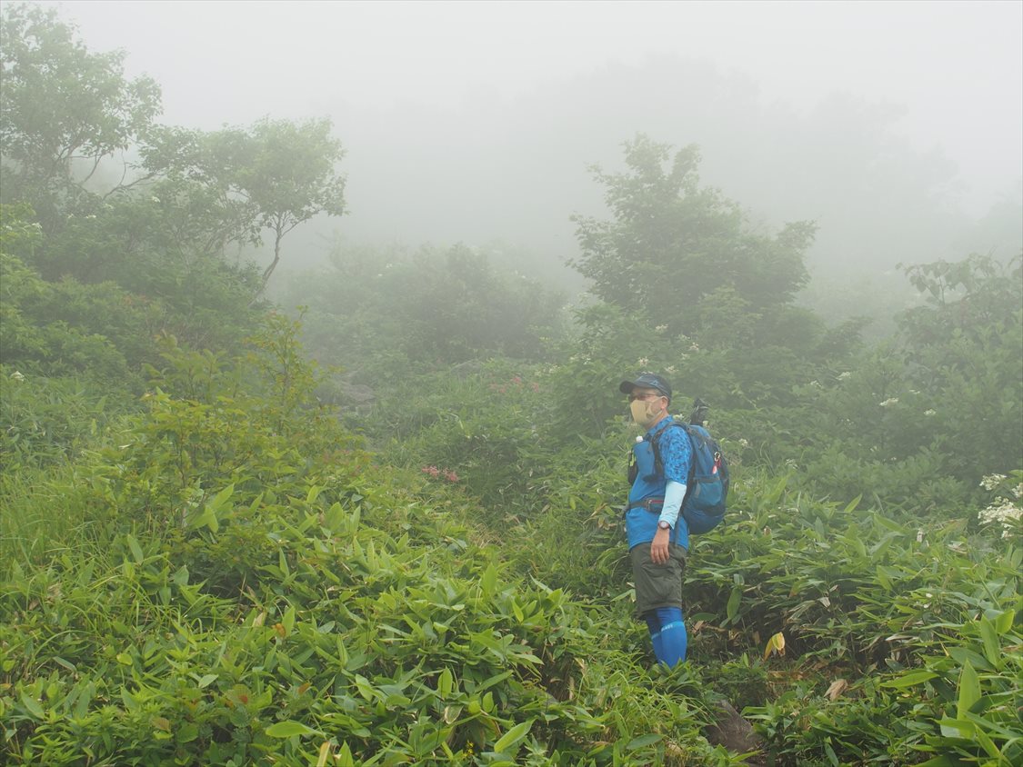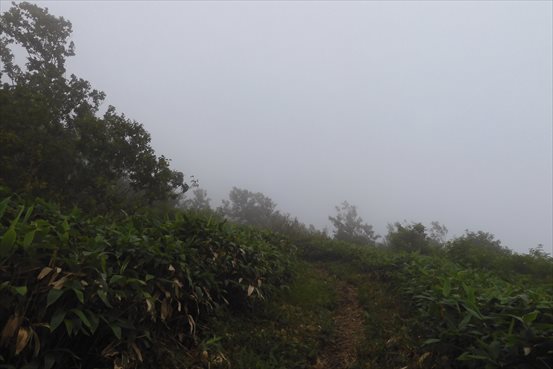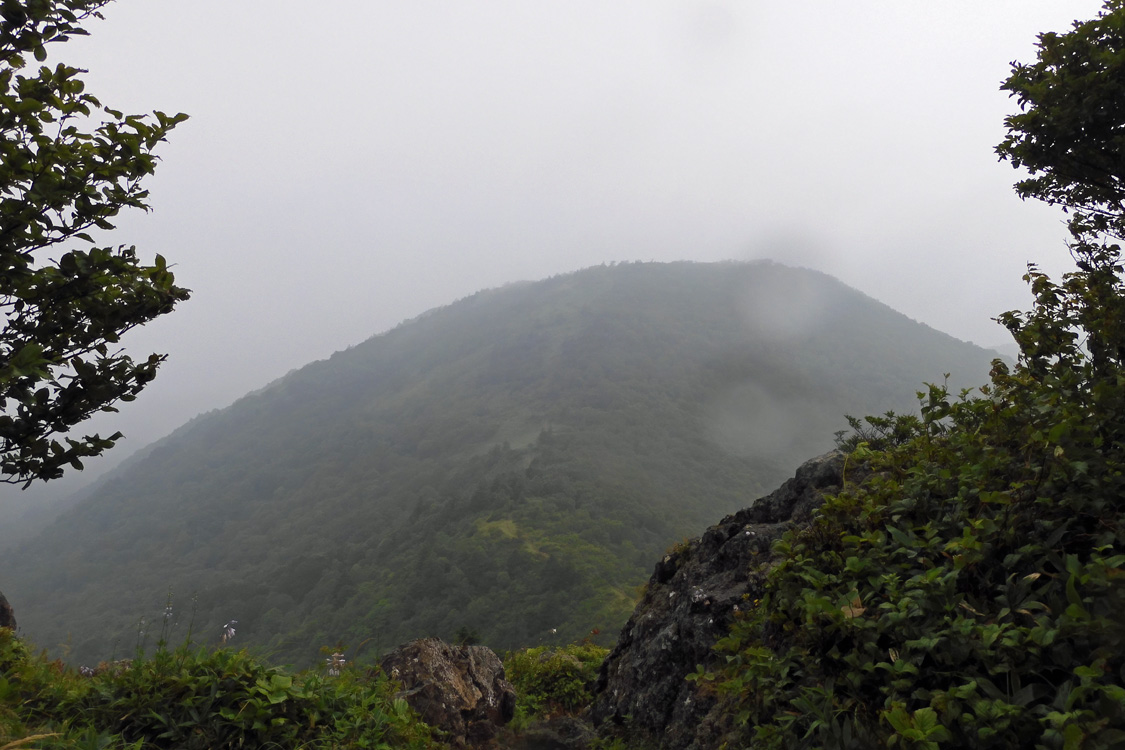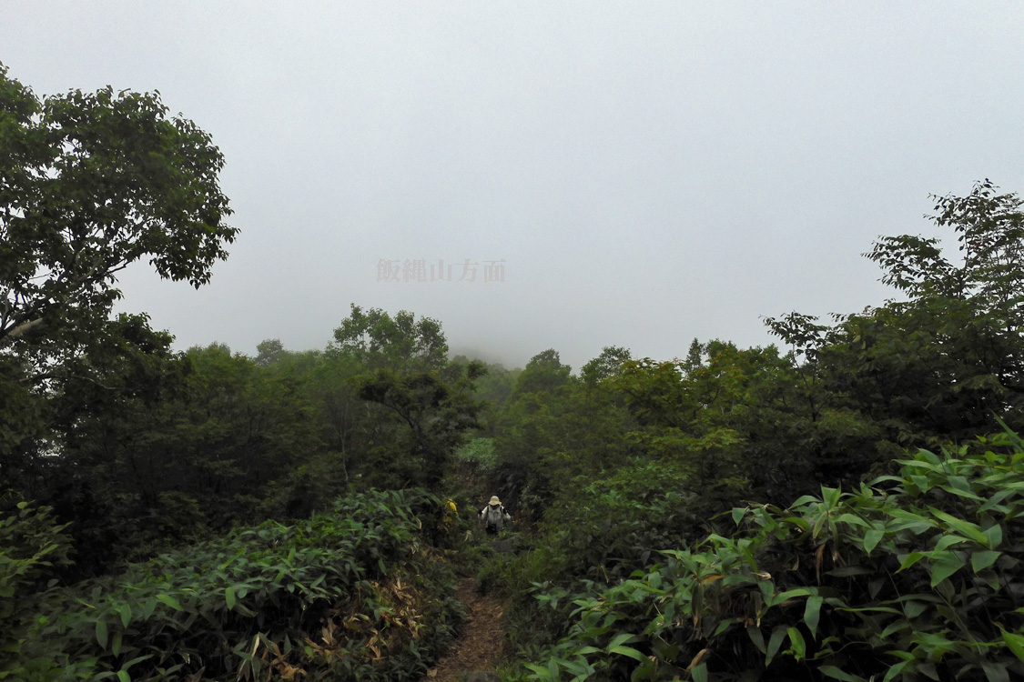 振り返って飯縄山! 雨雲の中だった(笑) |