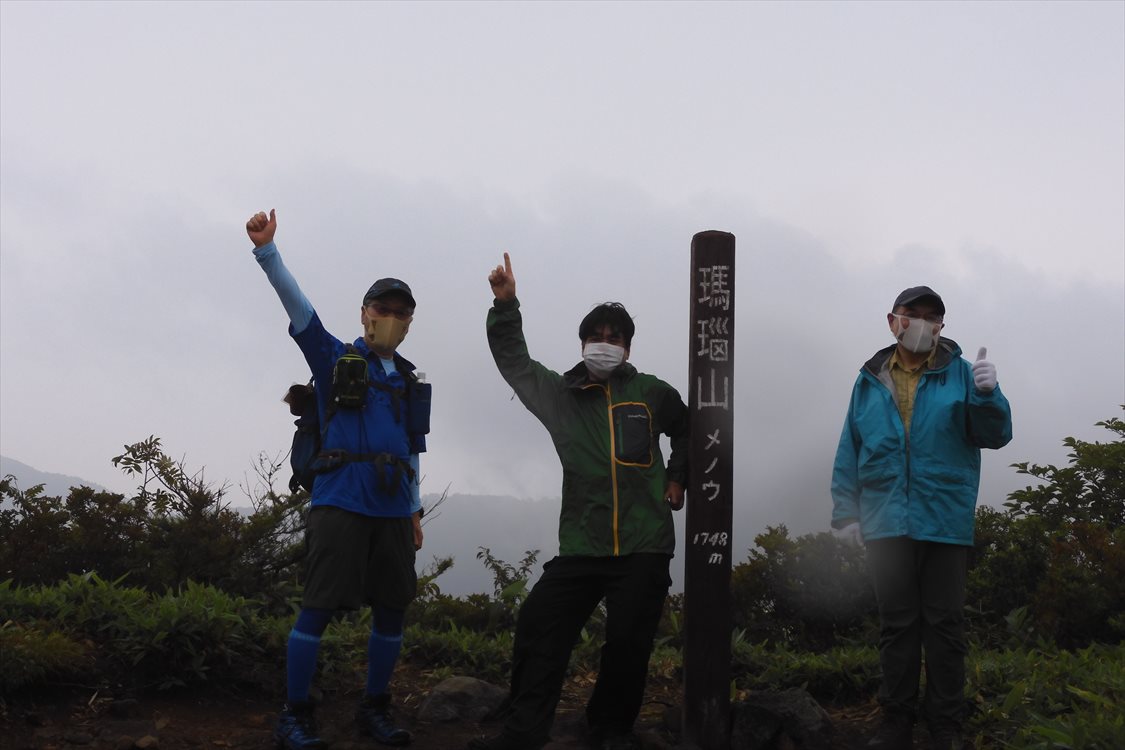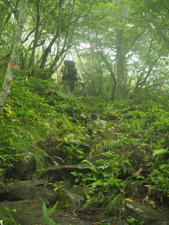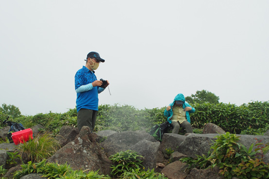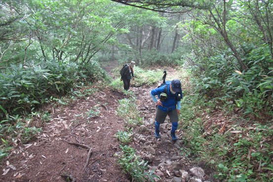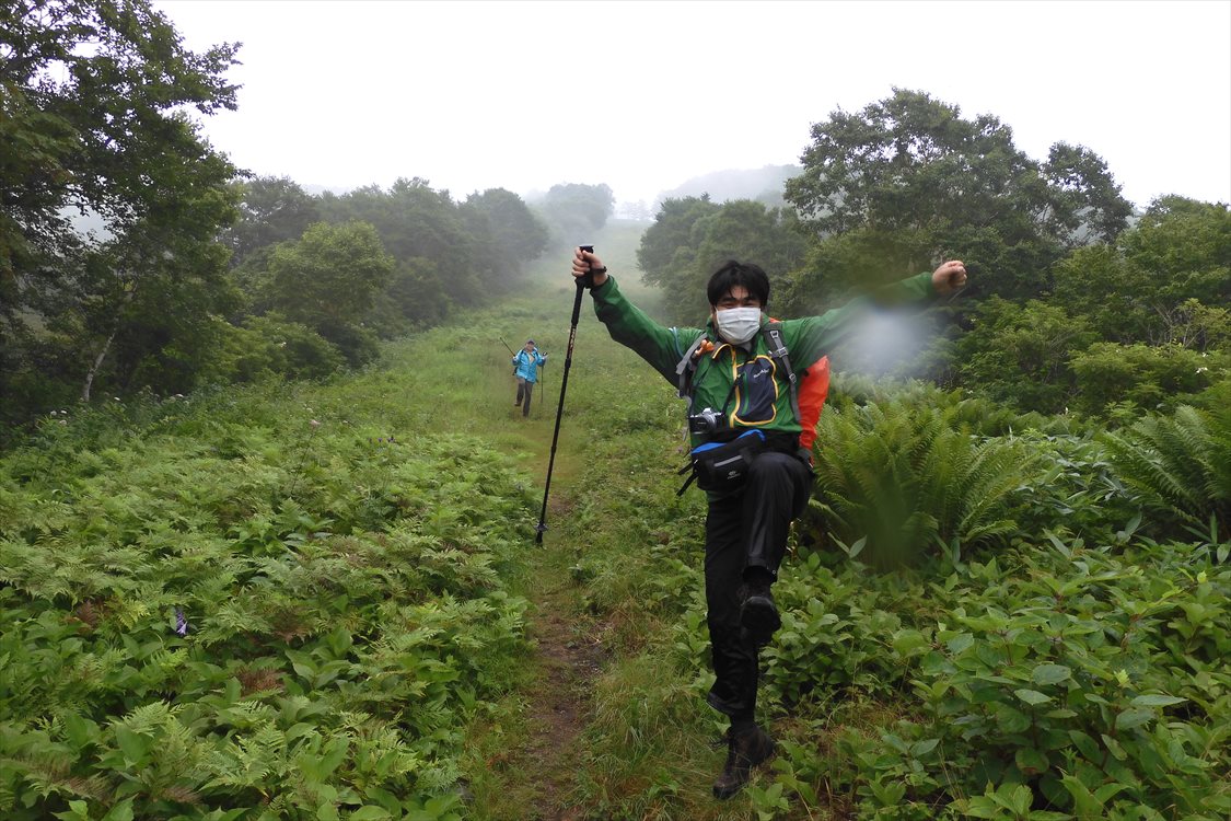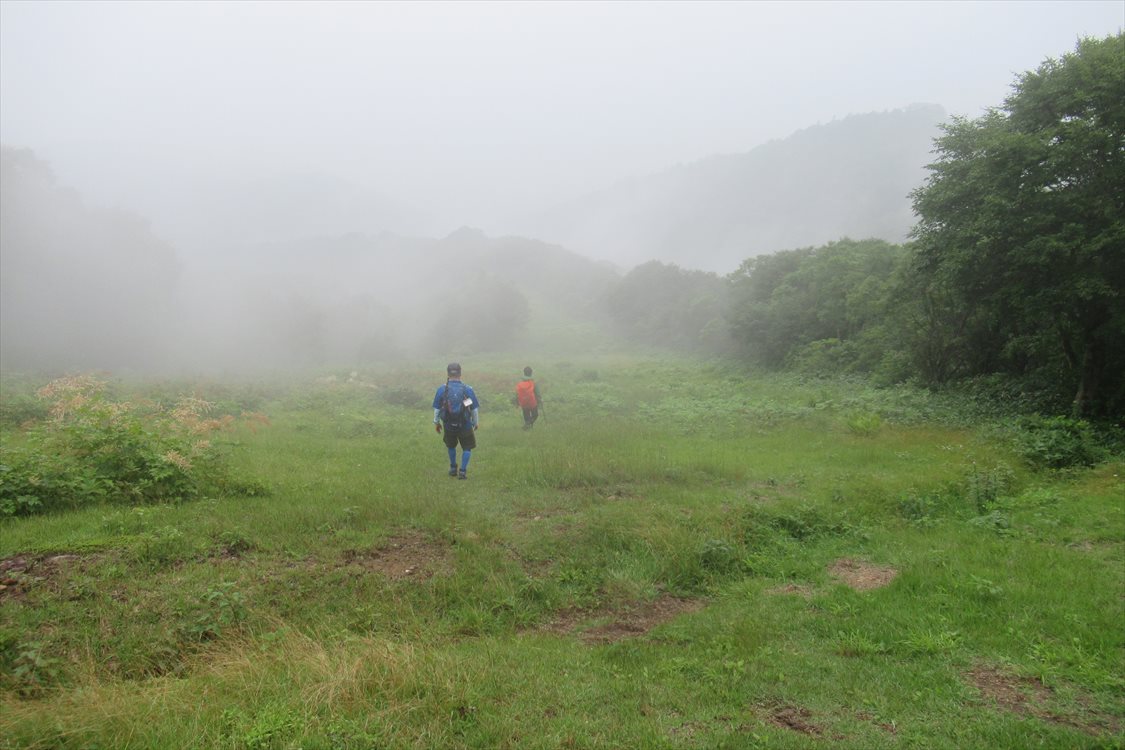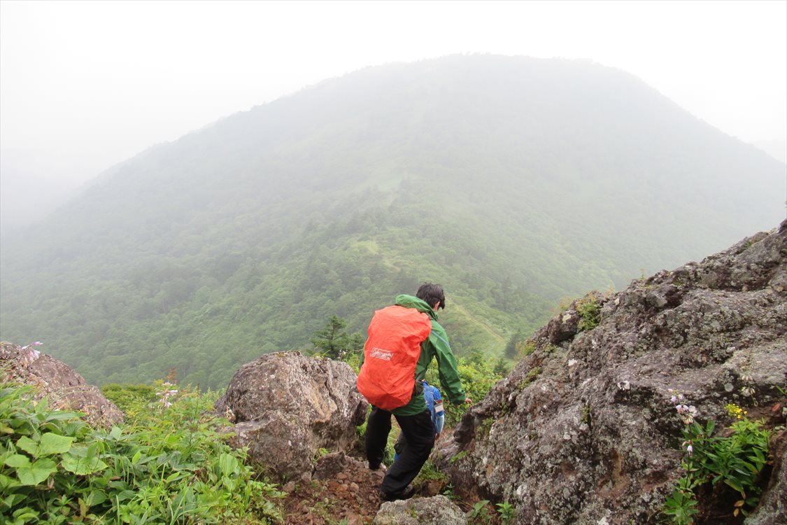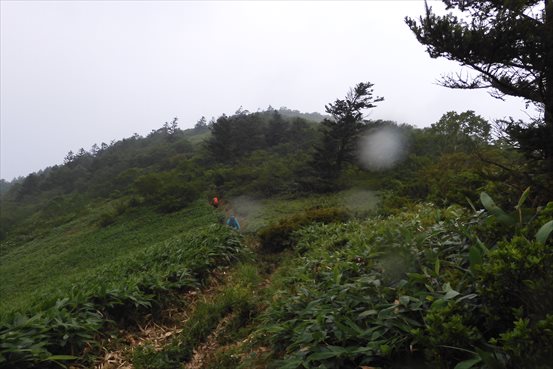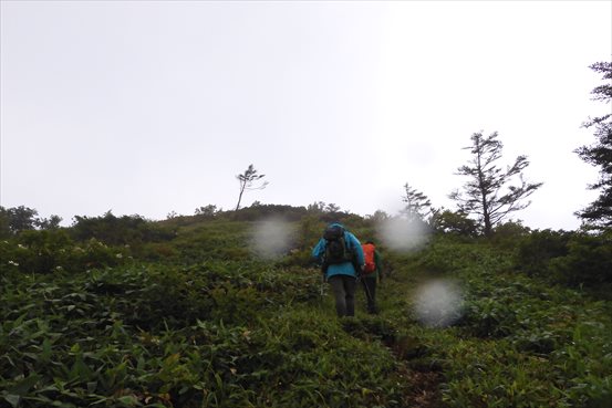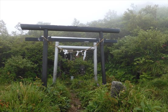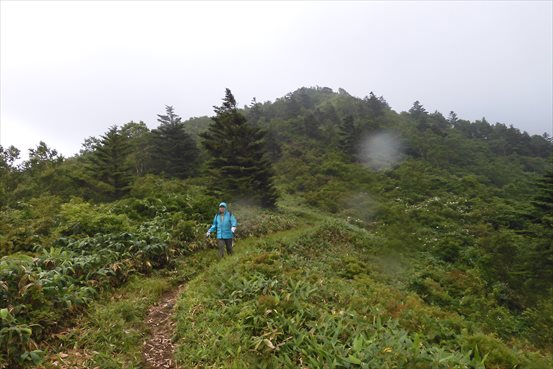 振り返って飯縄山! 雨雲の中だった(笑) |