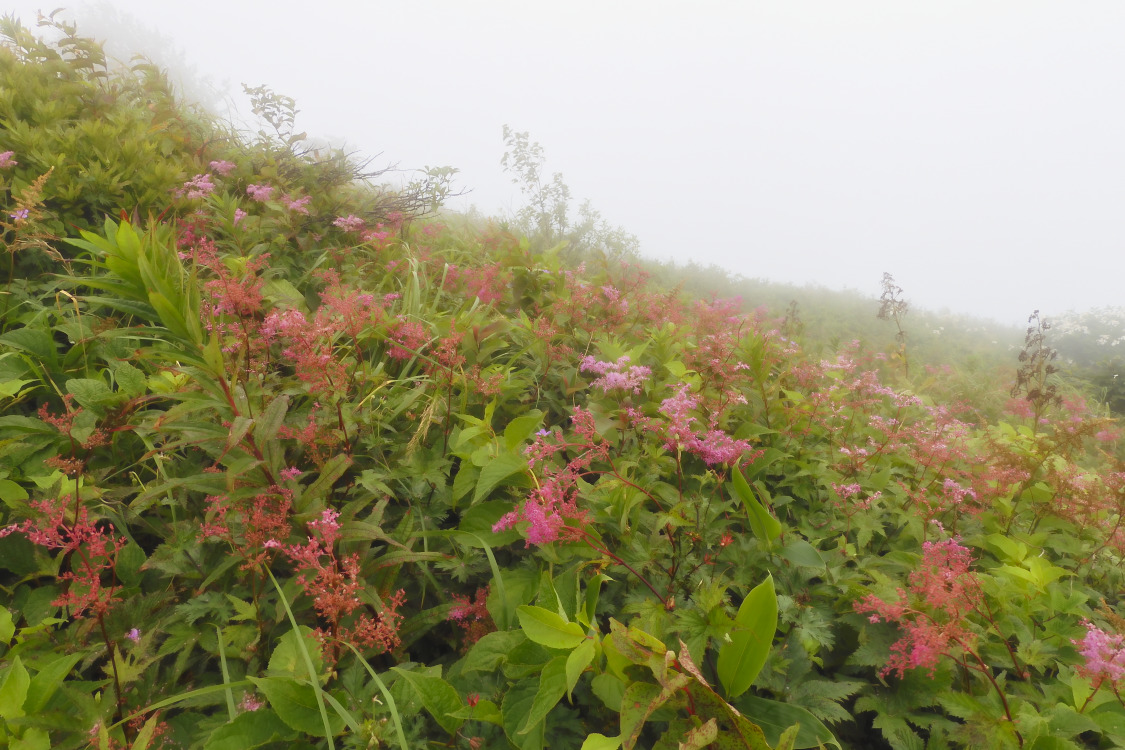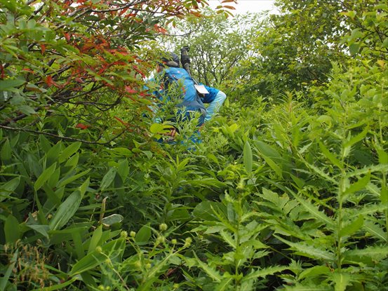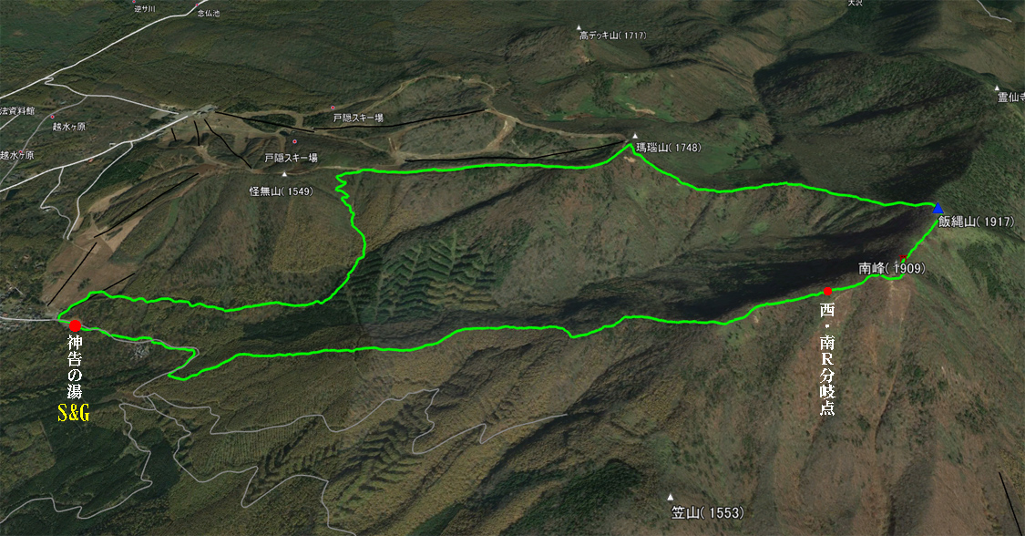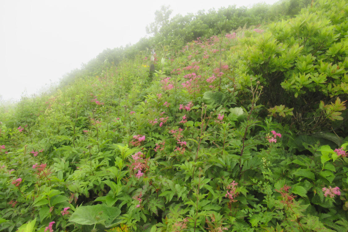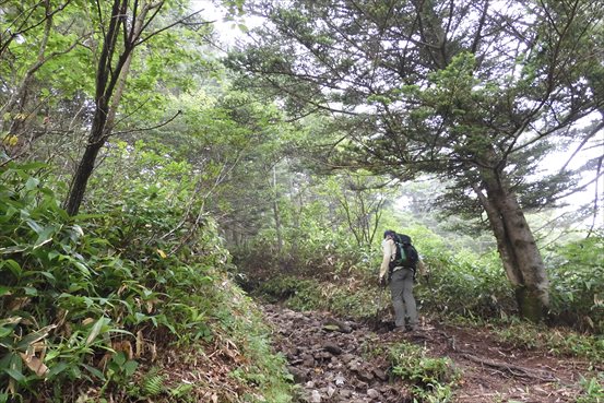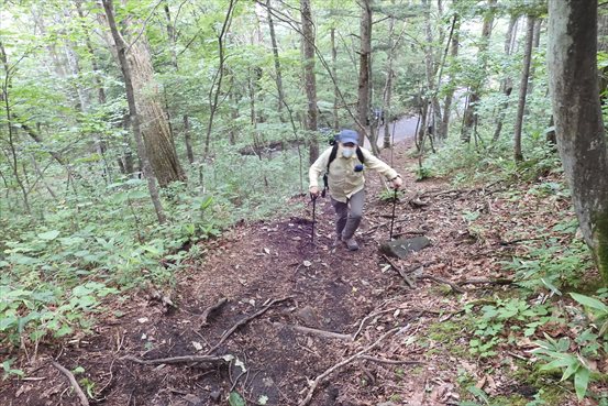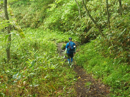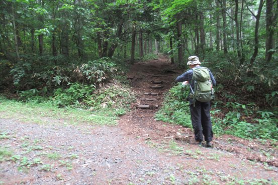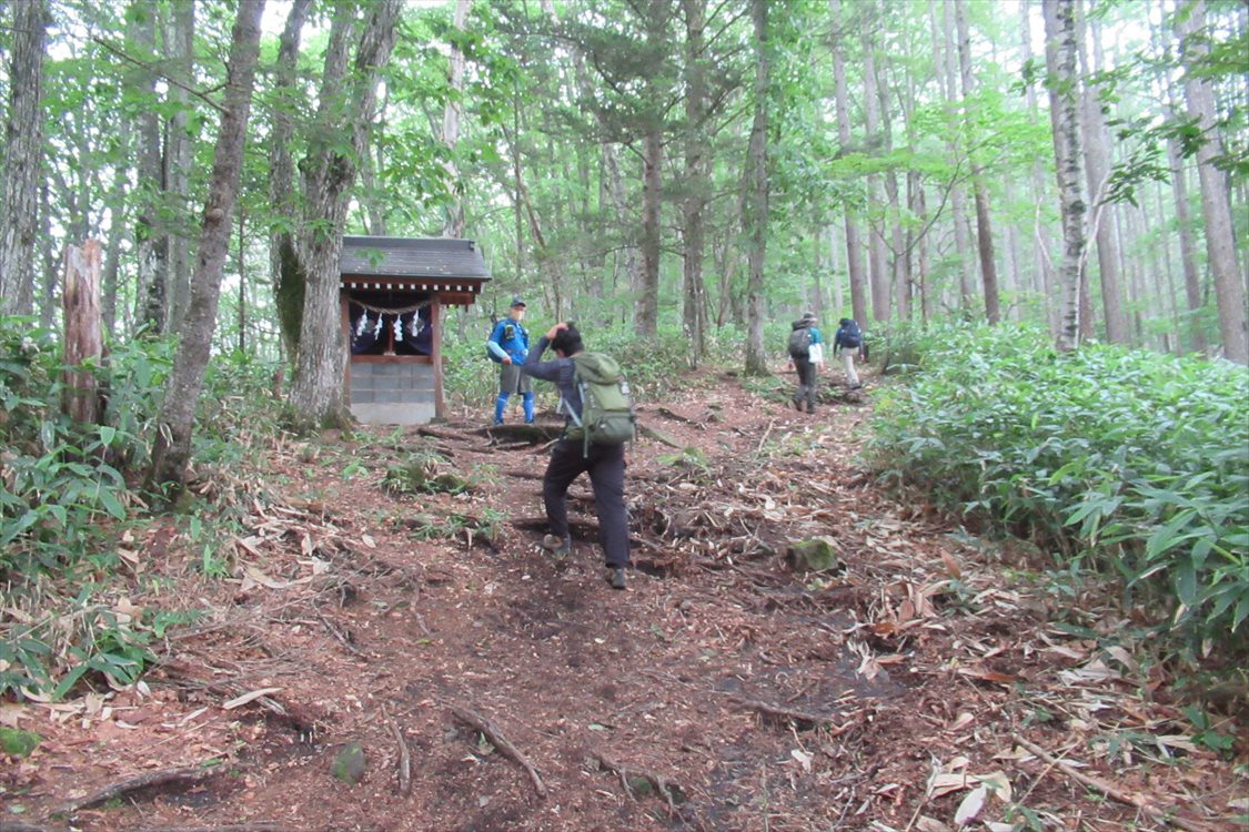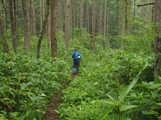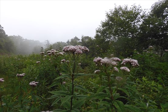 振り返って飯縄山! 雨雲の中だった(笑) |