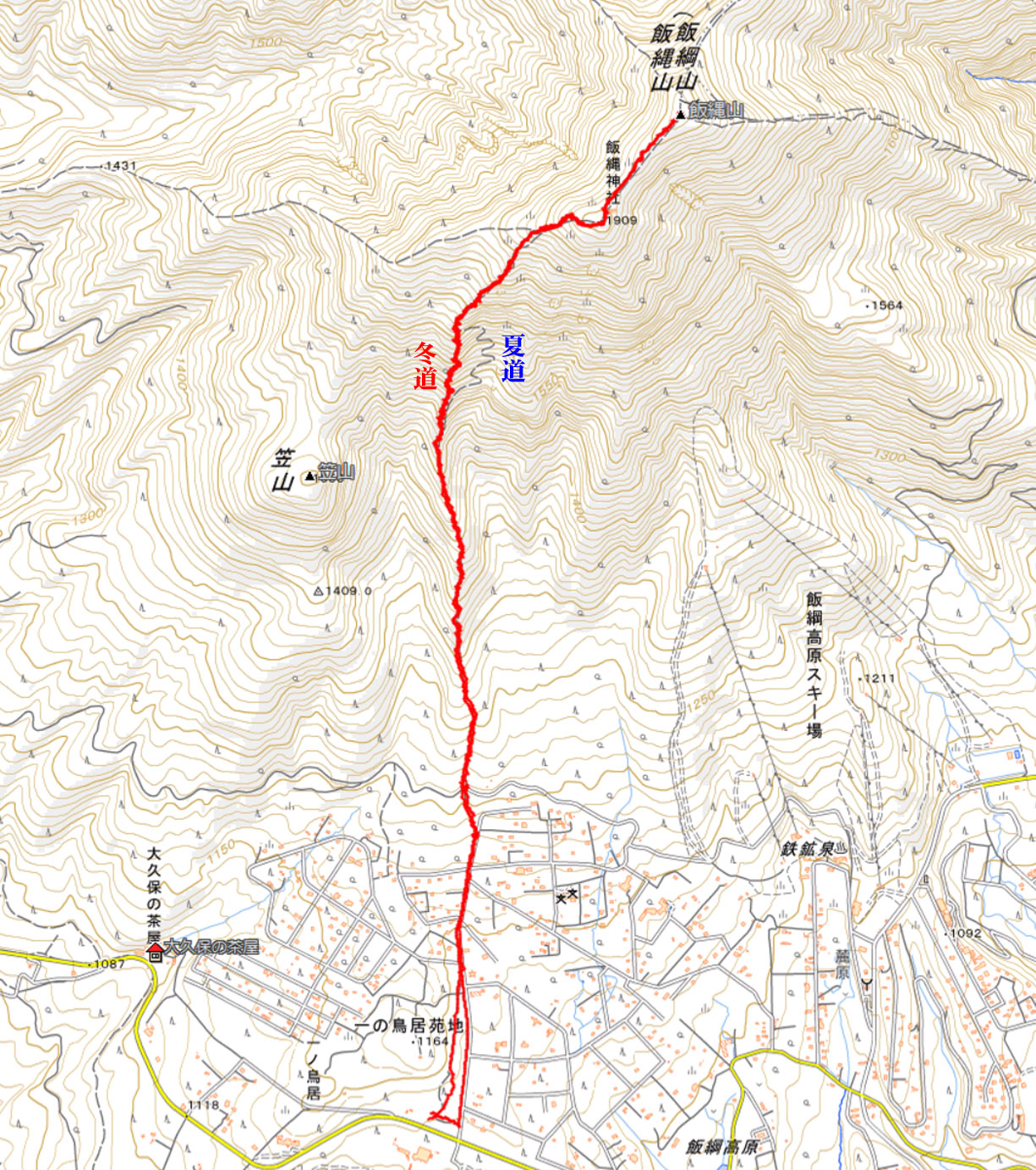 飯縄山ルート地図 (計曲線 50M 主曲線 10M) |