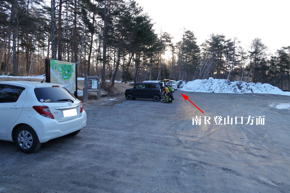 一ノ鳥居苑地駐車場(24時間使用可能) ※南峰の携行トイレブースは冬期閉鎖につき要注意!