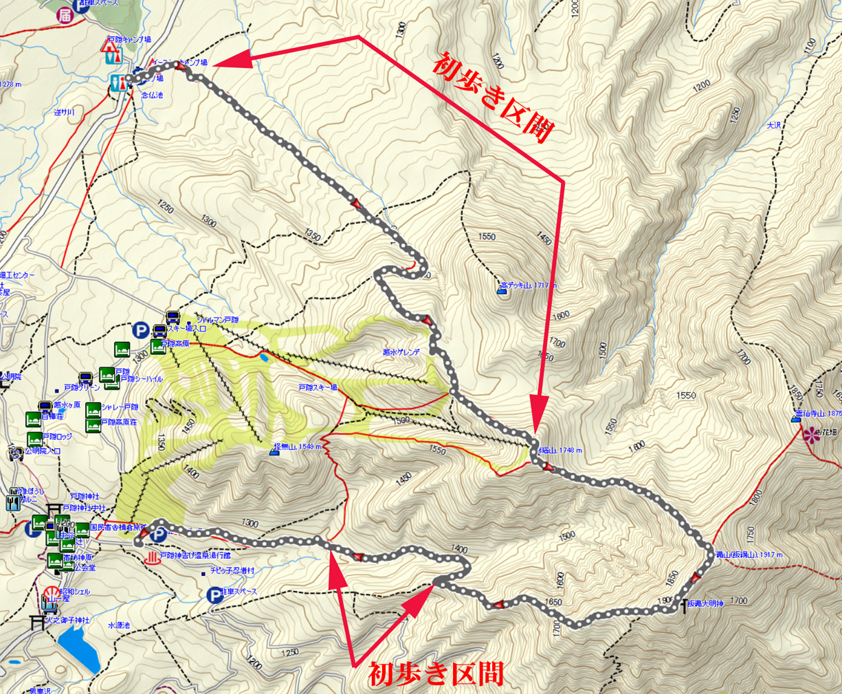 瑪瑙山にむけてゲレンデを直登 | ||||