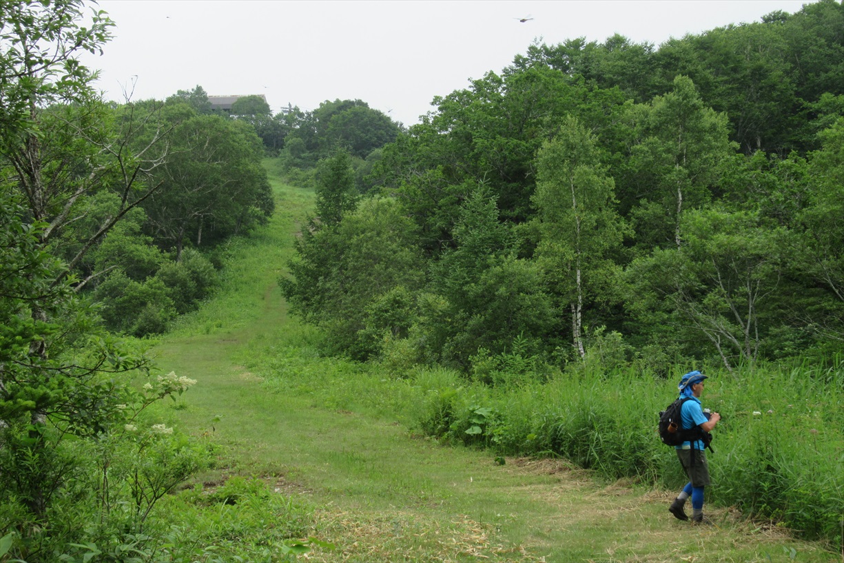越水ゲレンデリフト山頂駅 山頂駅方面左側に巻き道登山道あり |