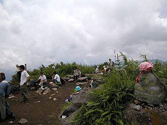学校登山.育成会登山で足の踏み場も ないほど混雑していました。 |