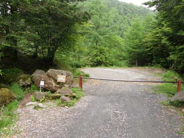 桜平駐車場(駐車場のある林道終点が近づくと道の左右いたる所に駐車スペース有)から車止めゲート脇を