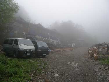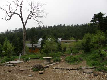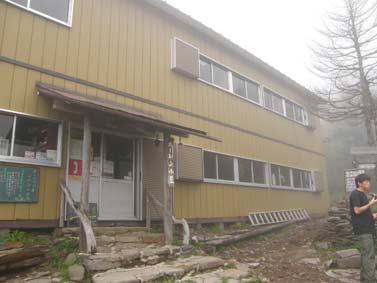 今日はここまでと諦め、悪天候を読み先に引き返された松澤さん親子(失礼)がいる硫黄岳避難小屋まで引き