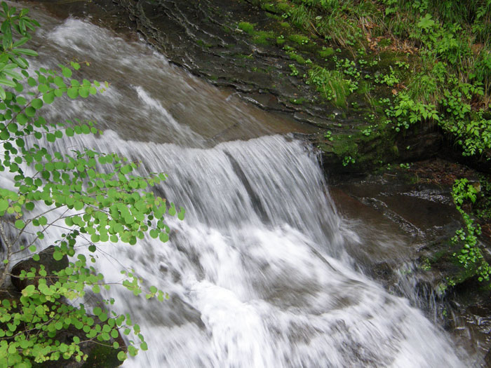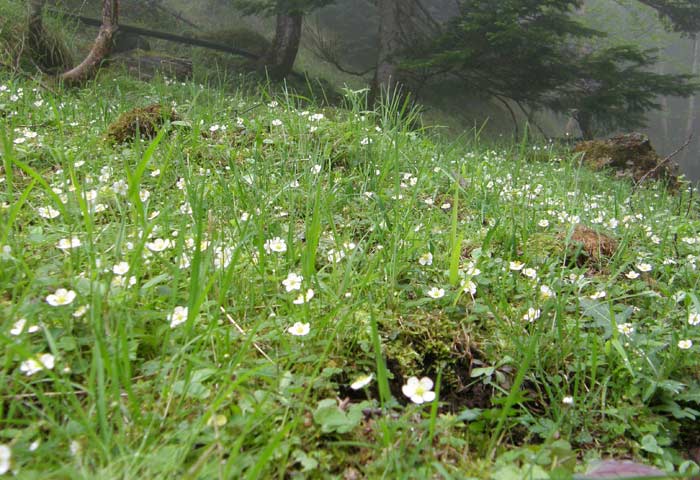 苔むした爽やかな清流と、マイヅルソウ・スミレなど清楚な花々が目を楽しませてくれる。