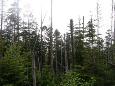帰路は赤岳鉱泉ルートの「赤岩の頭」手前分岐点で指導標に従いオーレン小屋までオオシラビソの樹林帯を