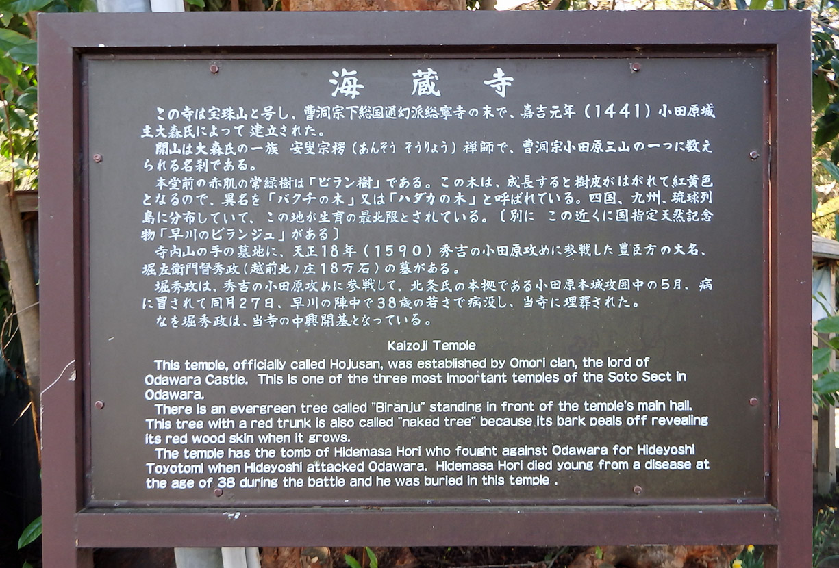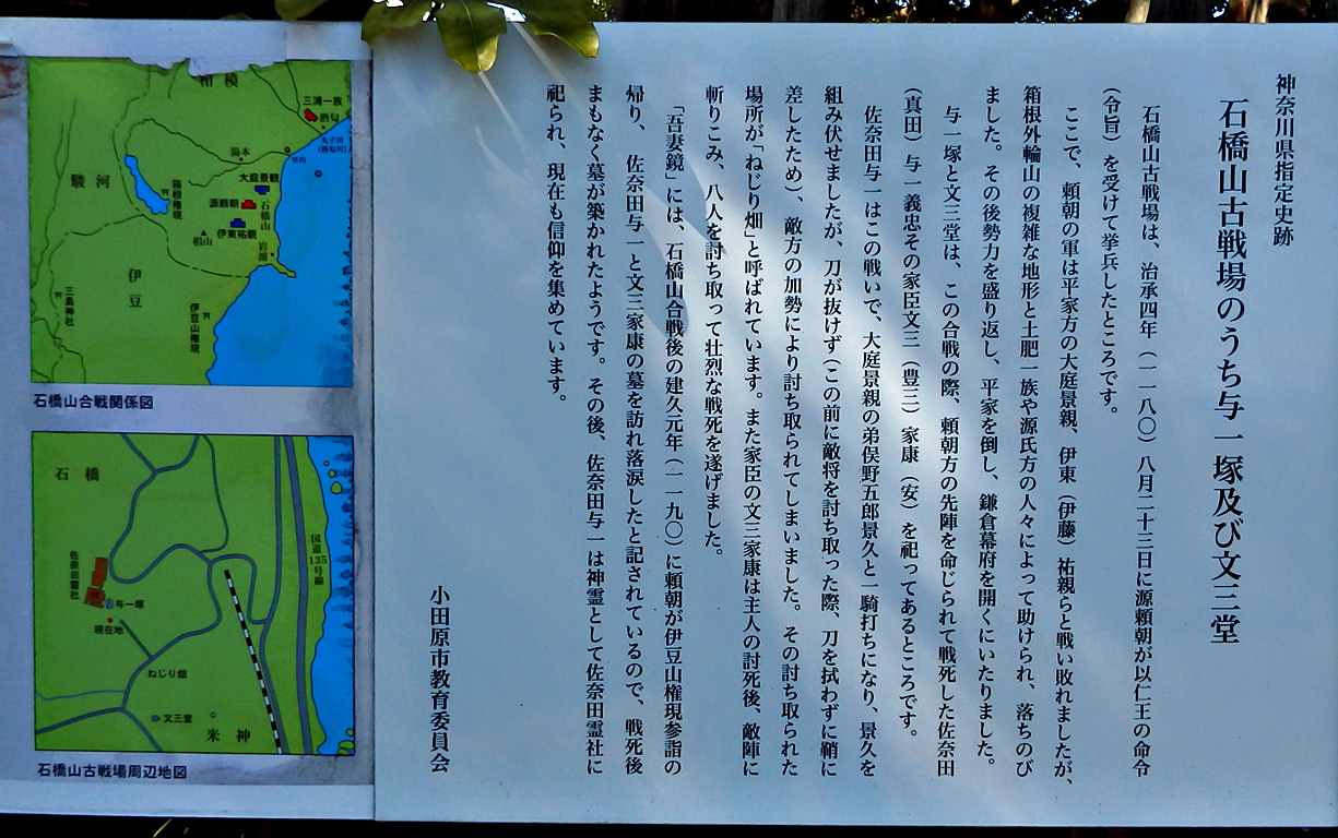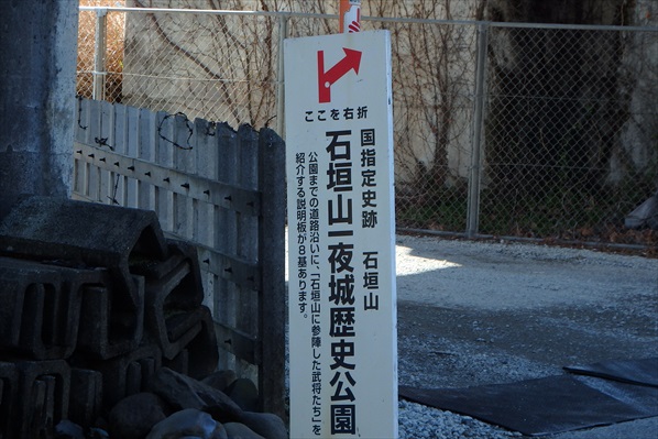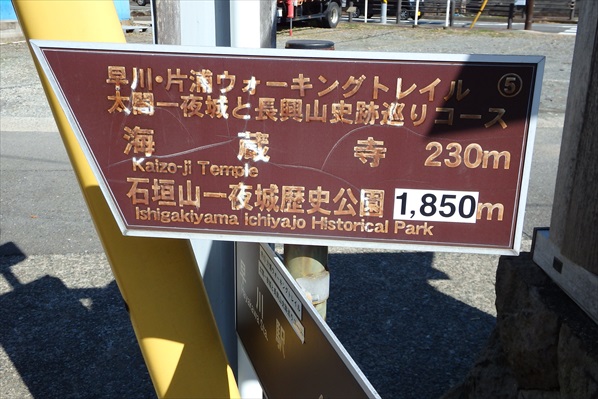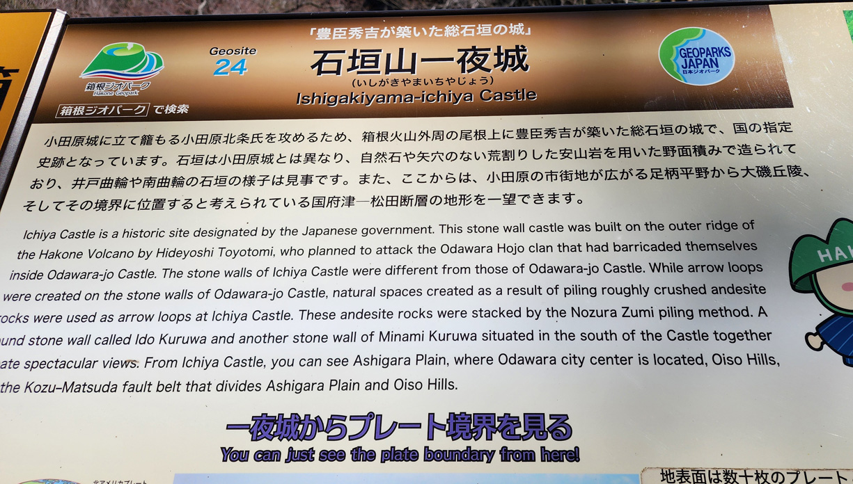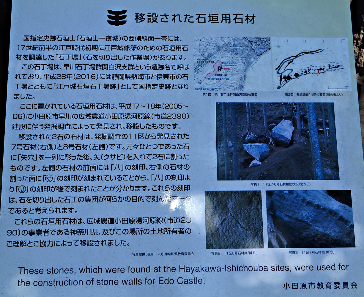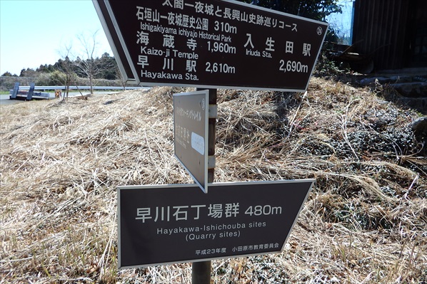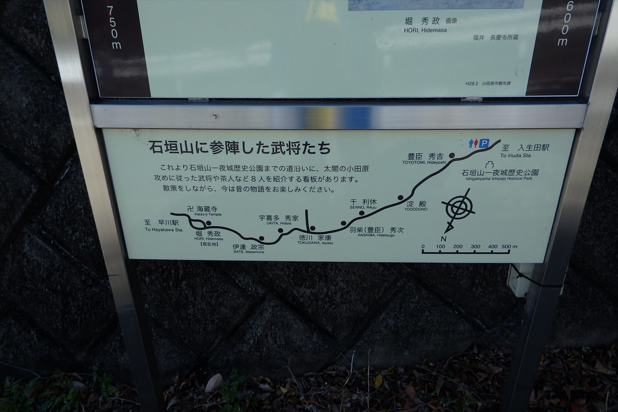 石垣山に参戦した武将たちの看板が設置されている | ||||