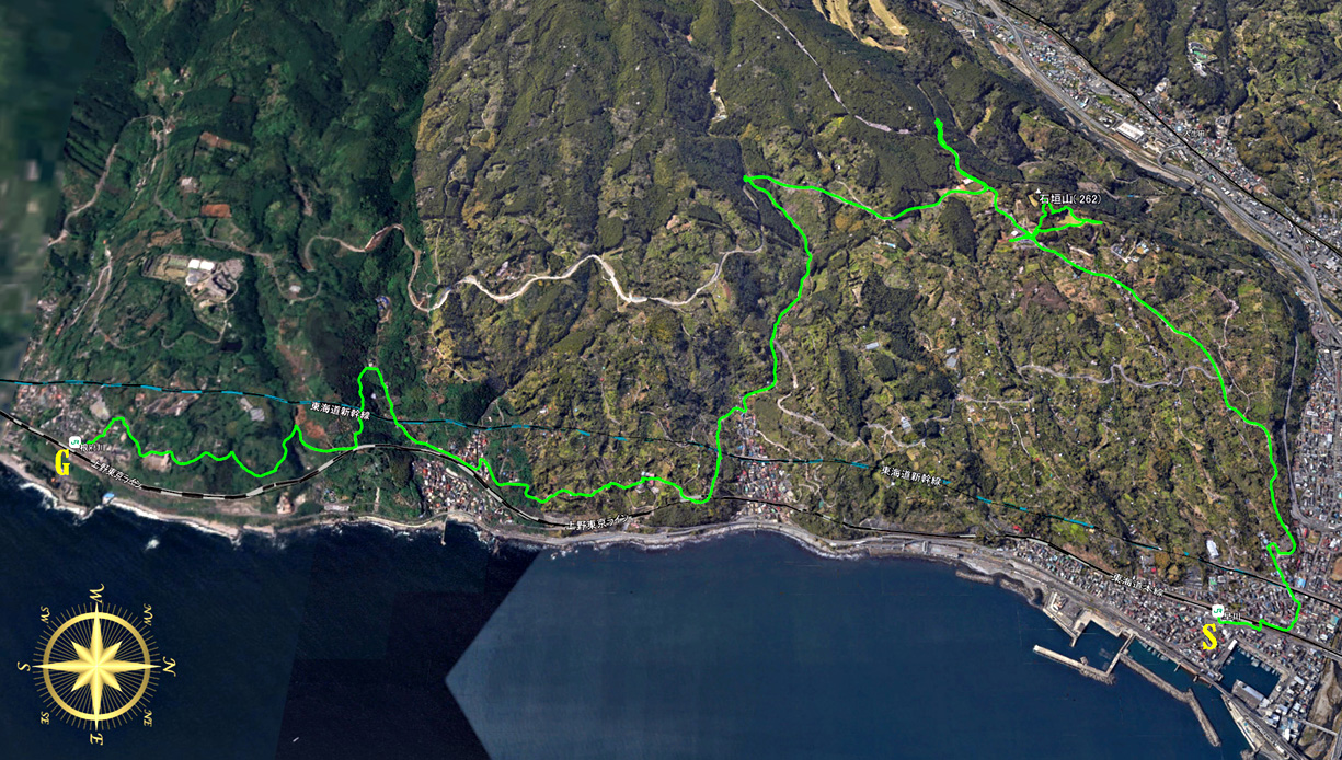 早川駅~石垣山(一夜城)~早川石丁場~佐奈田霊社~根府川駅ウォーキングトレイル鳥瞰図 ヤマレコ⇒https://www.yamareco.com/modules/yamareco/detail-7944892.html |