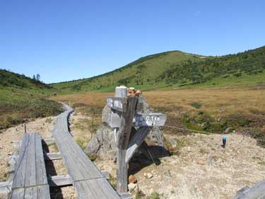鎌沼の奥に磐梯山を望める | ここまで来るとつい早足になってしまう | |||
