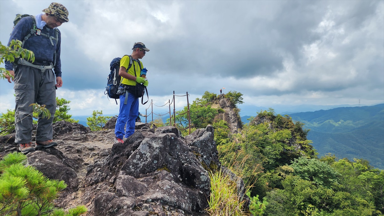 山頂を目指す爺/九合目岩稜から撮影 | ||||