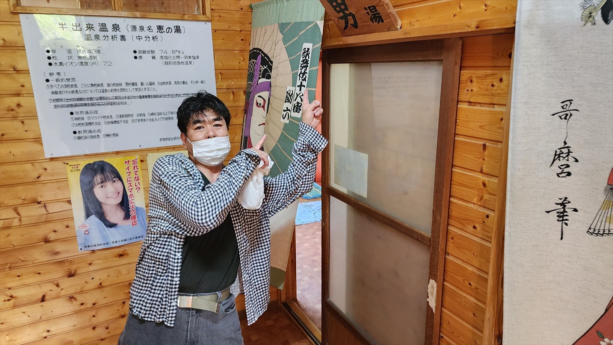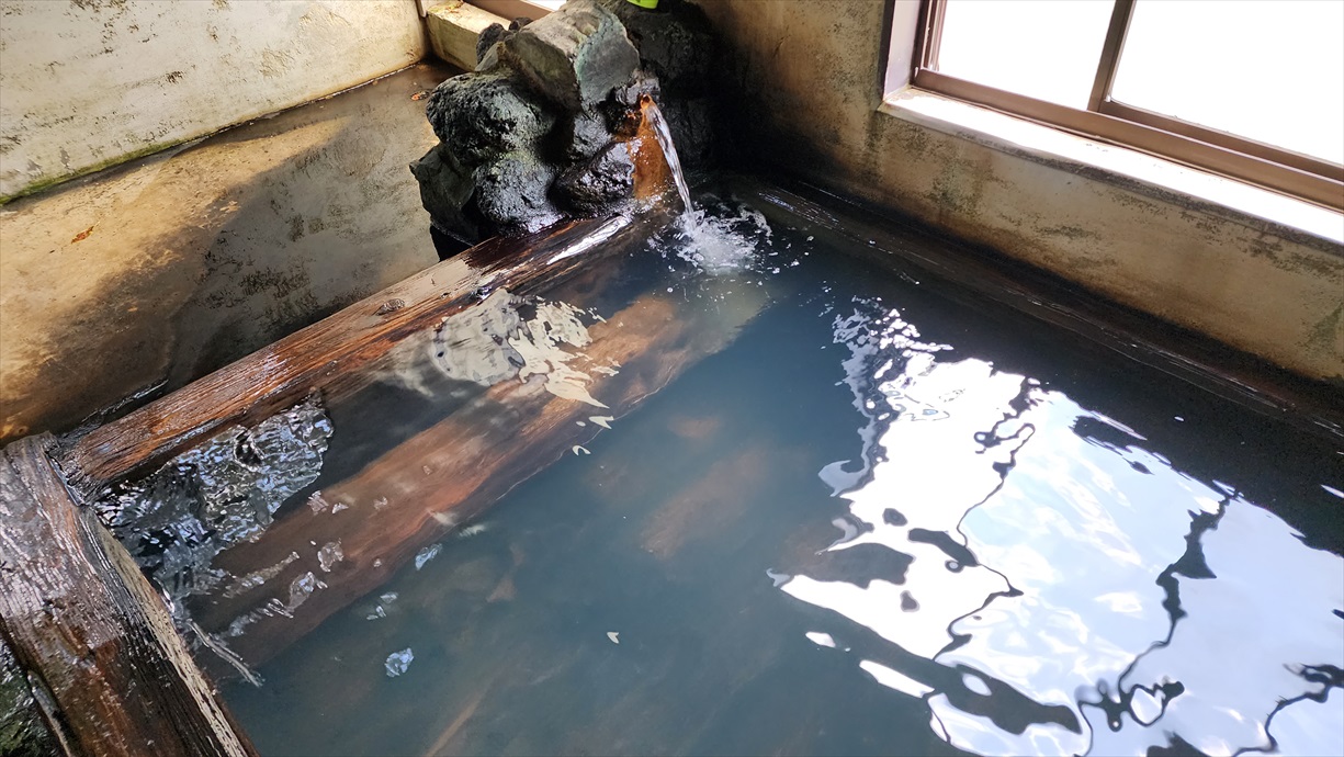 源泉は薄い塩味&薄く白濁・泉質満足度☆☆☆ 露天風呂は混浴 |