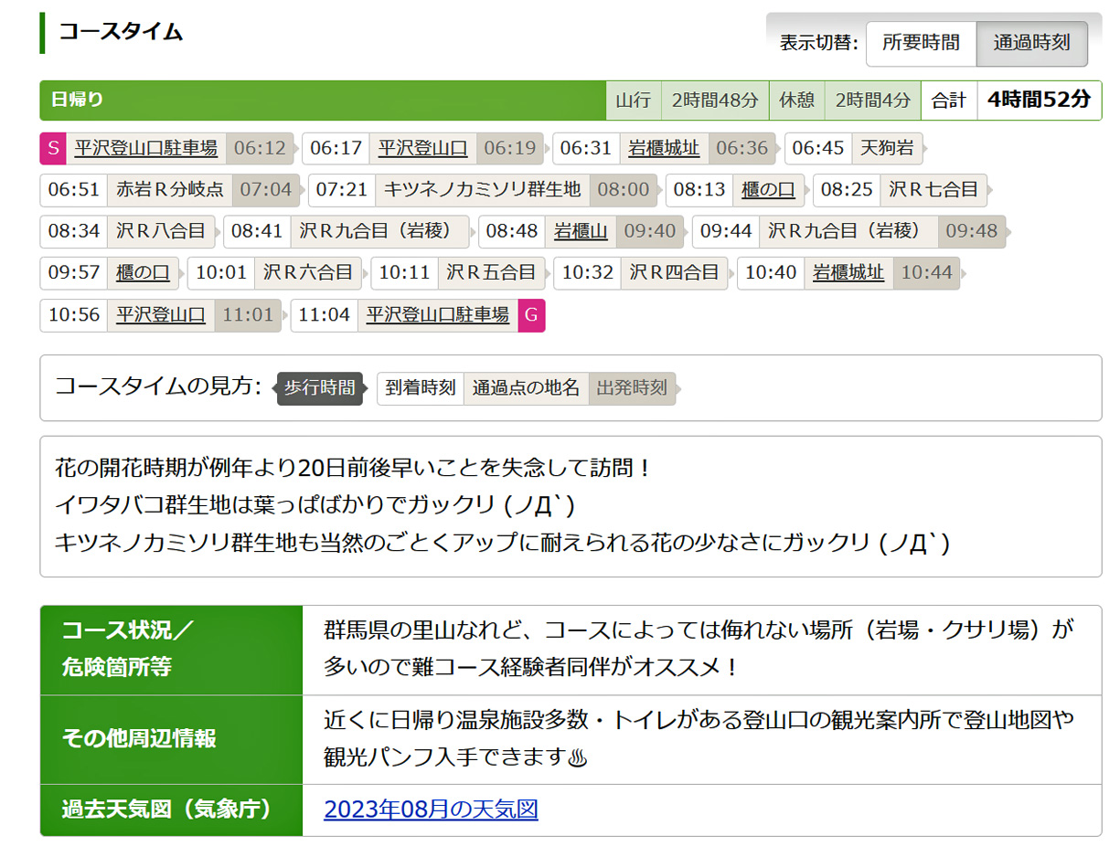 《岩櫃山コースタイム他》 写真撮影時間20分〜100分含む |
