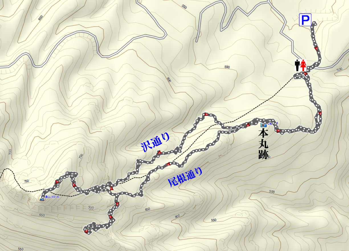 今日はキツネノカミソリ群生地がメイン目的なので「尾根通り」を選択 | ||||