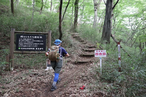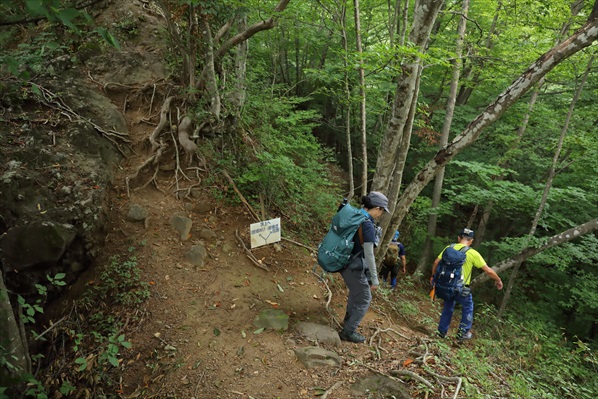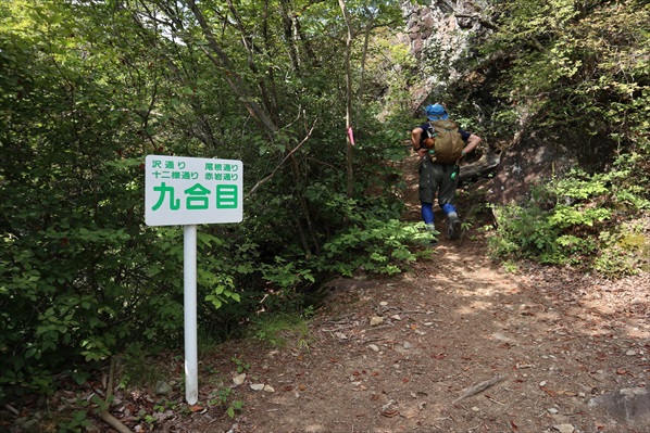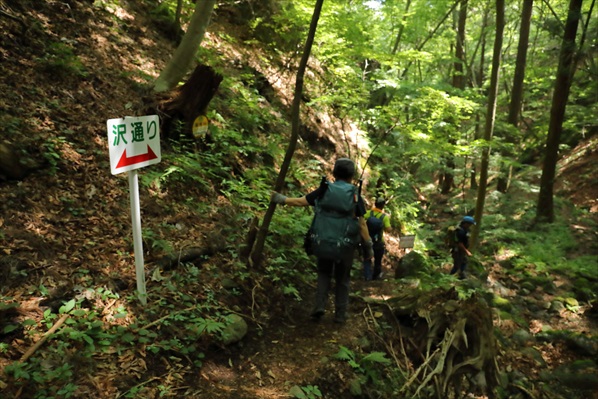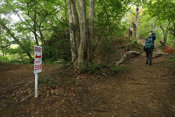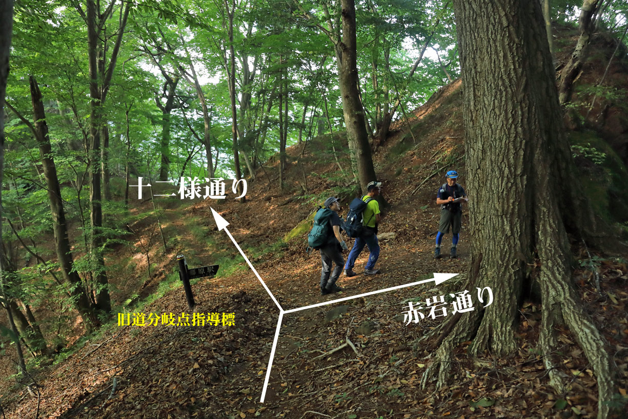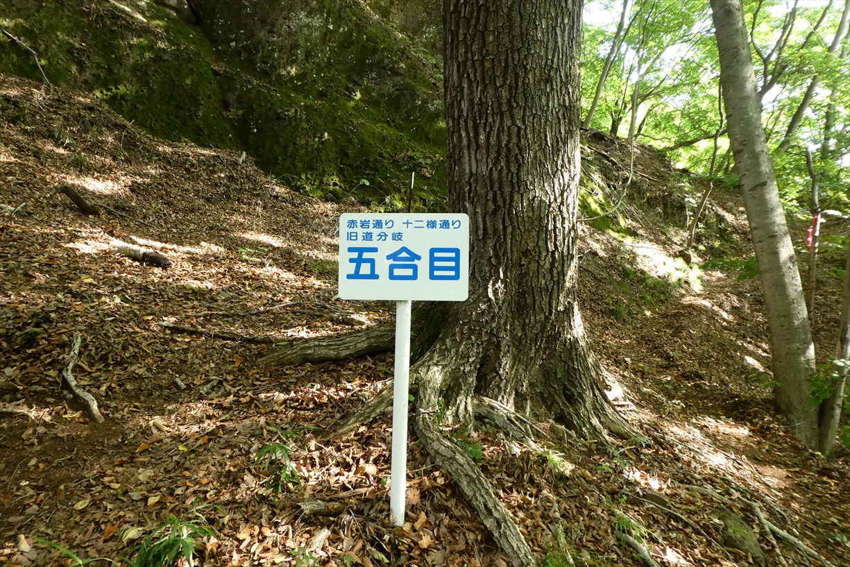六合目・赤岩通り分岐点 キツネノカミソリ撮影後はこの分岐点まで戻り「沢通り」へ下る |