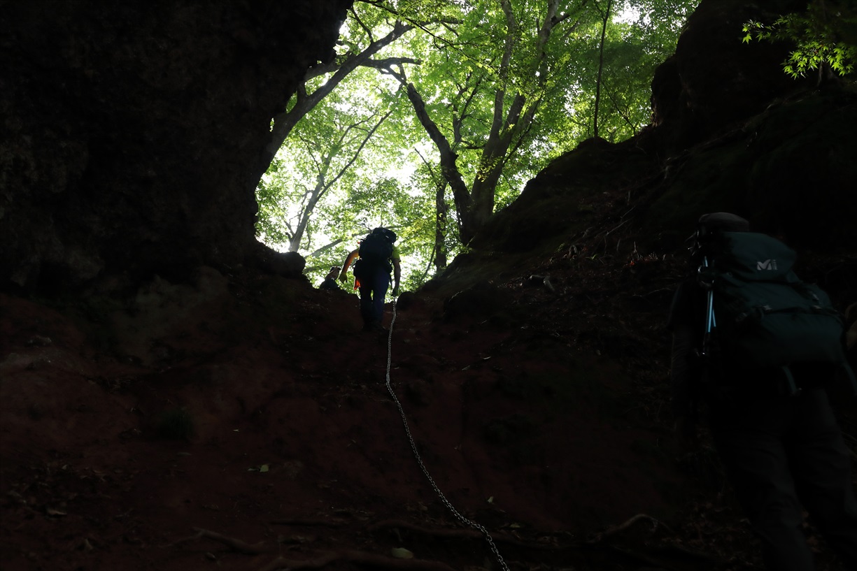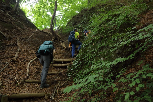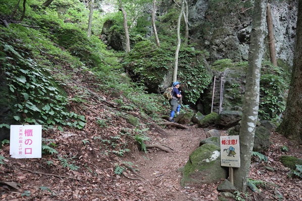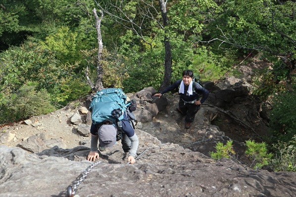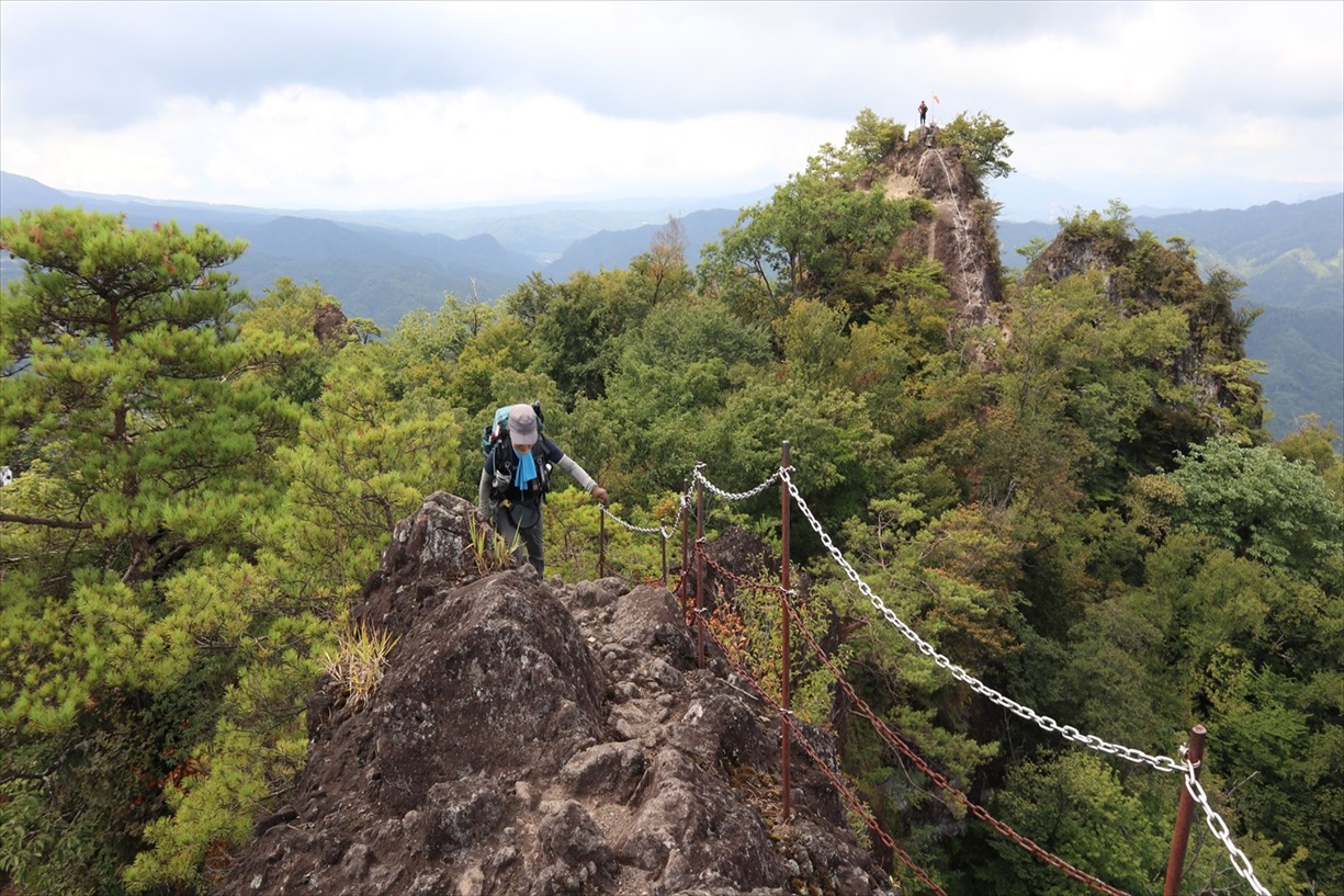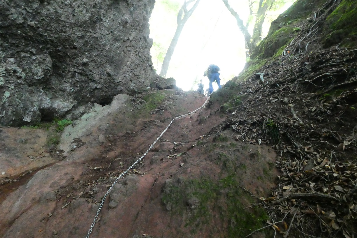 九合目岩稜から岩櫃山を望む | 九合目岩稜を降りる | |||