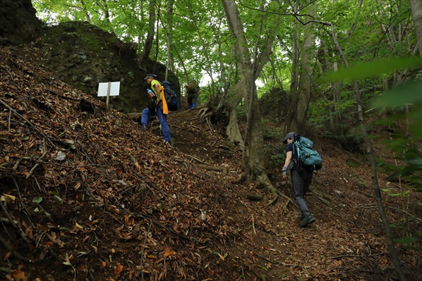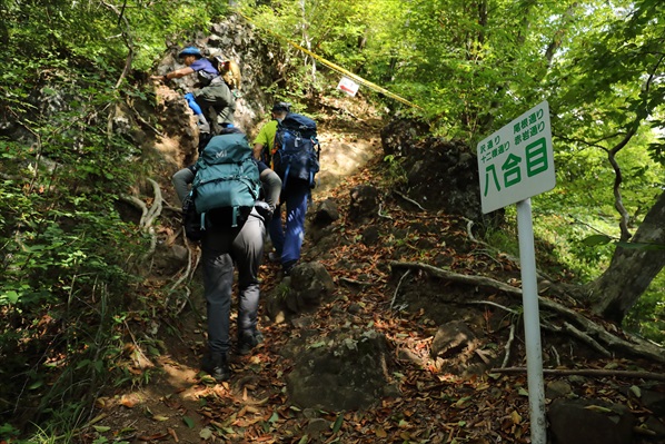 六合目・赤岩通り分岐点で沢通りから山頂へ向かう! | ||||
