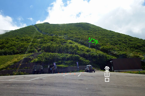 八合目駐車場(売店&トイレ) | リフトモーター室横が登山口 | |||