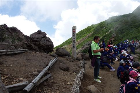 学校登山中の女の子が先生に「ミチノクコザクラ見られるかな〜?」と聴いたが先生は理解できなかったみたいで、 先生も引率で登るだけでなく「岩木山の植物や歴史などを調べてくればいいのに」とおもう一幕がありました。 |