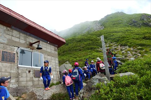 ガレ場を登る | 振り返ればヒュッテが小さく | |||
