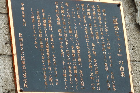 凰鳴ヒュッテ 昭和39年1月6日 凰鳴高校山岳部・下山途中に遭難された生徒さんに哀悼の意を表します |