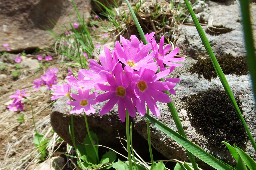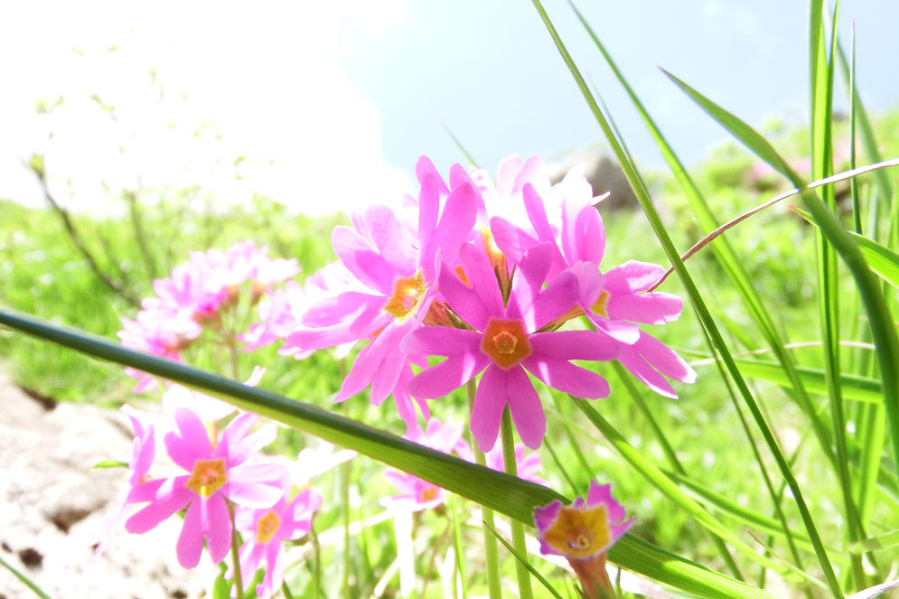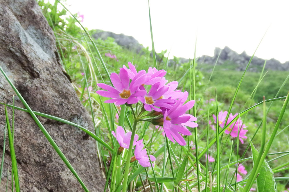 岩木山固有種・ミチノクコザクラ ハクサンコザクラの変種で原種よりやや大きい岩木山固有種 岩木山には「安寿と厨子王」の伝説があり、花は安寿姫のかんざしに例えられる。 山と渓谷社・花の百名山より抜粋 |