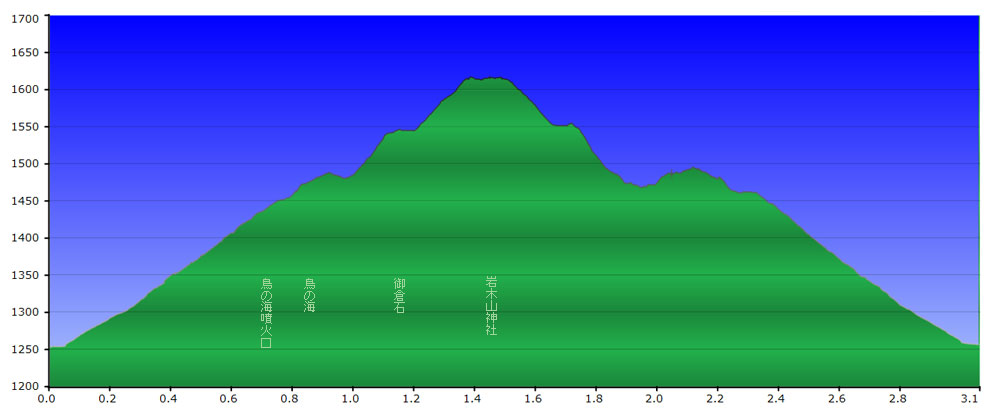 八合目駐車場/1252M 標高差/372.7M 総歩行距離/3073M | ||||
