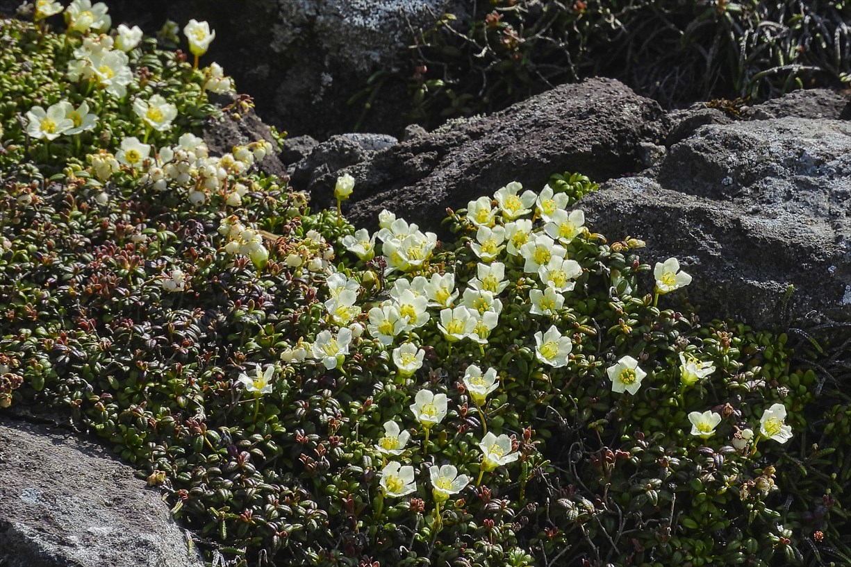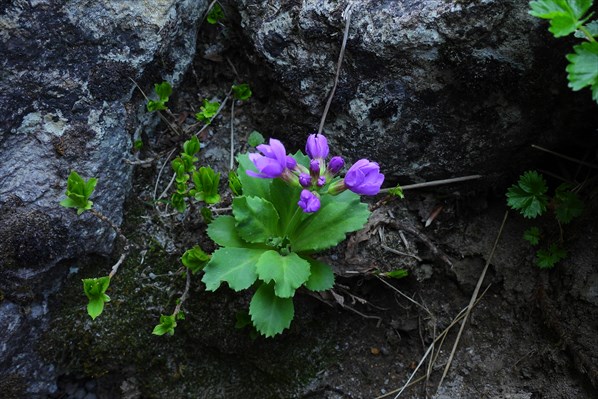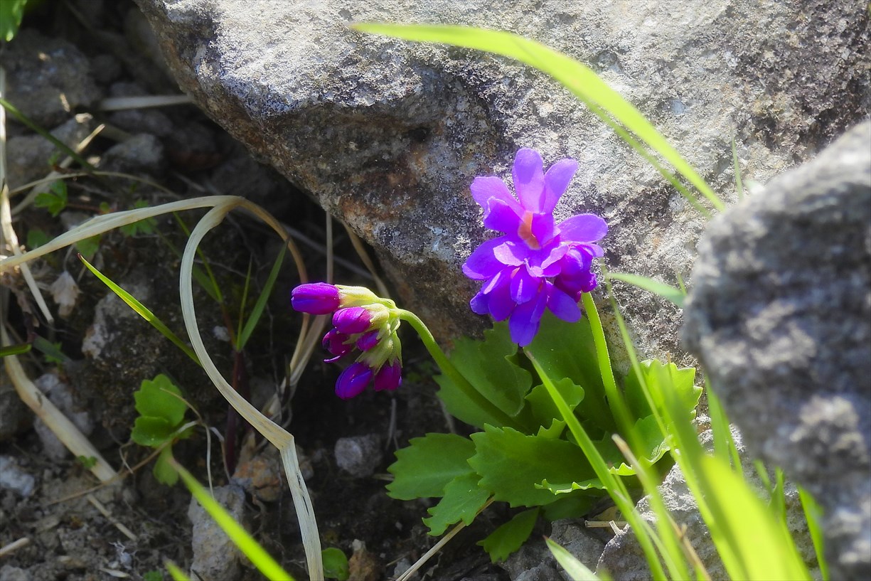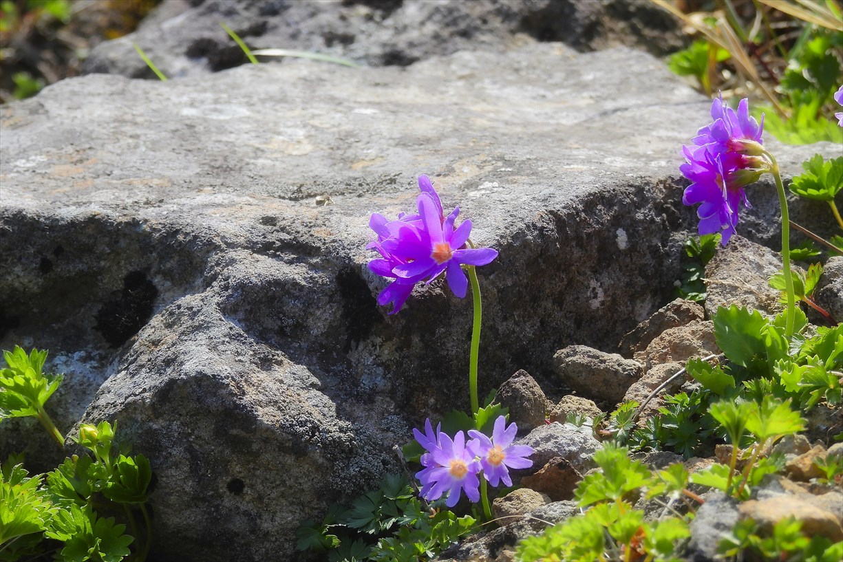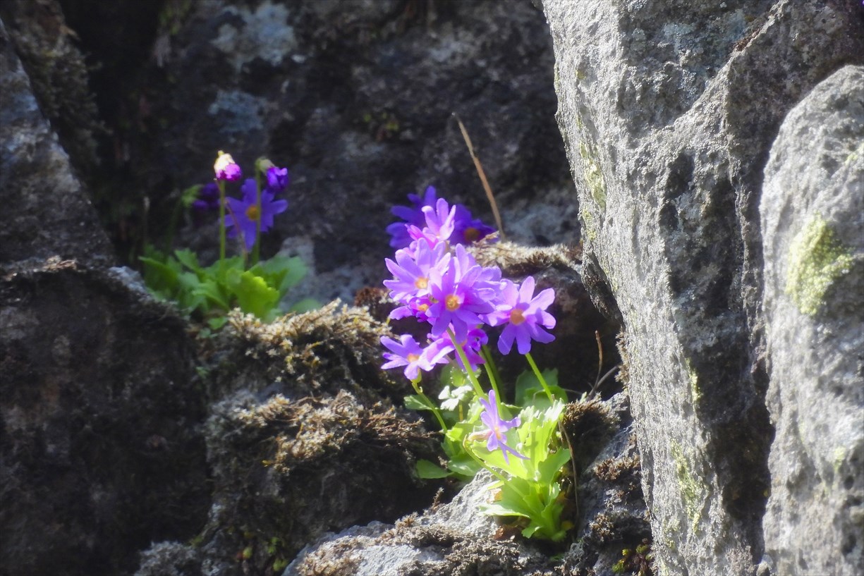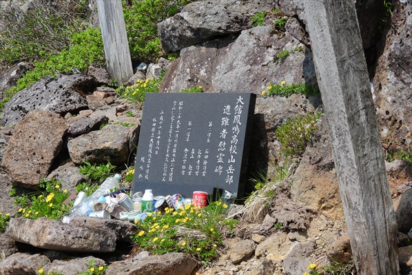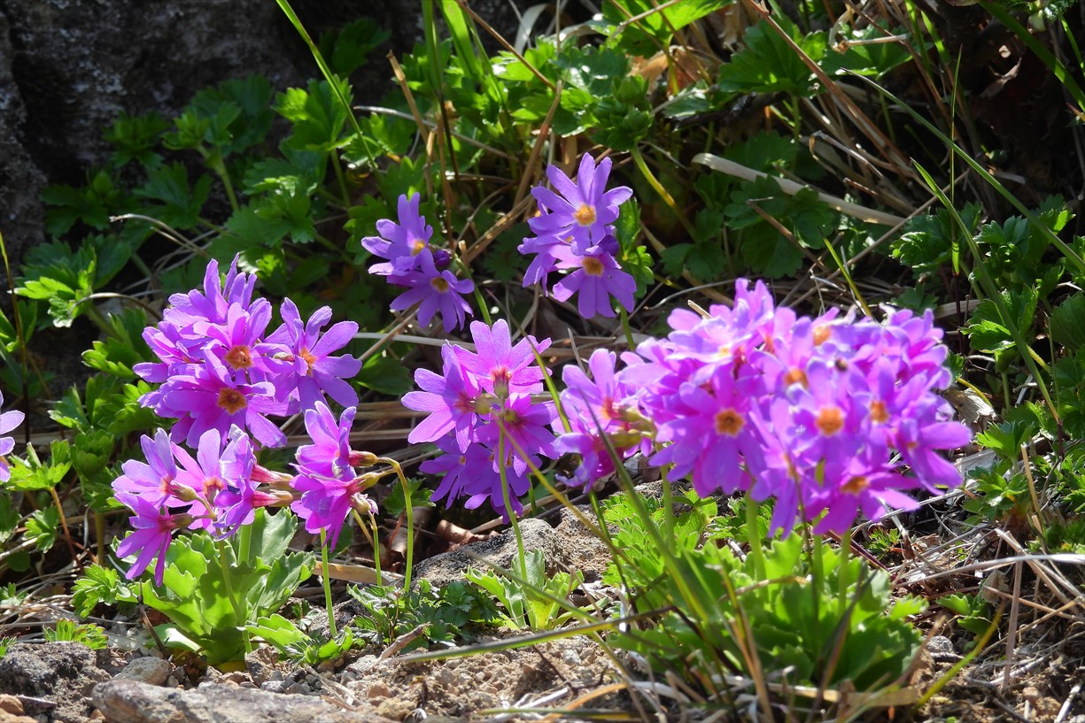 大館鳳鳴高校山岳部遭難者慰霊碑で咲くヒメコザクラ | ||||