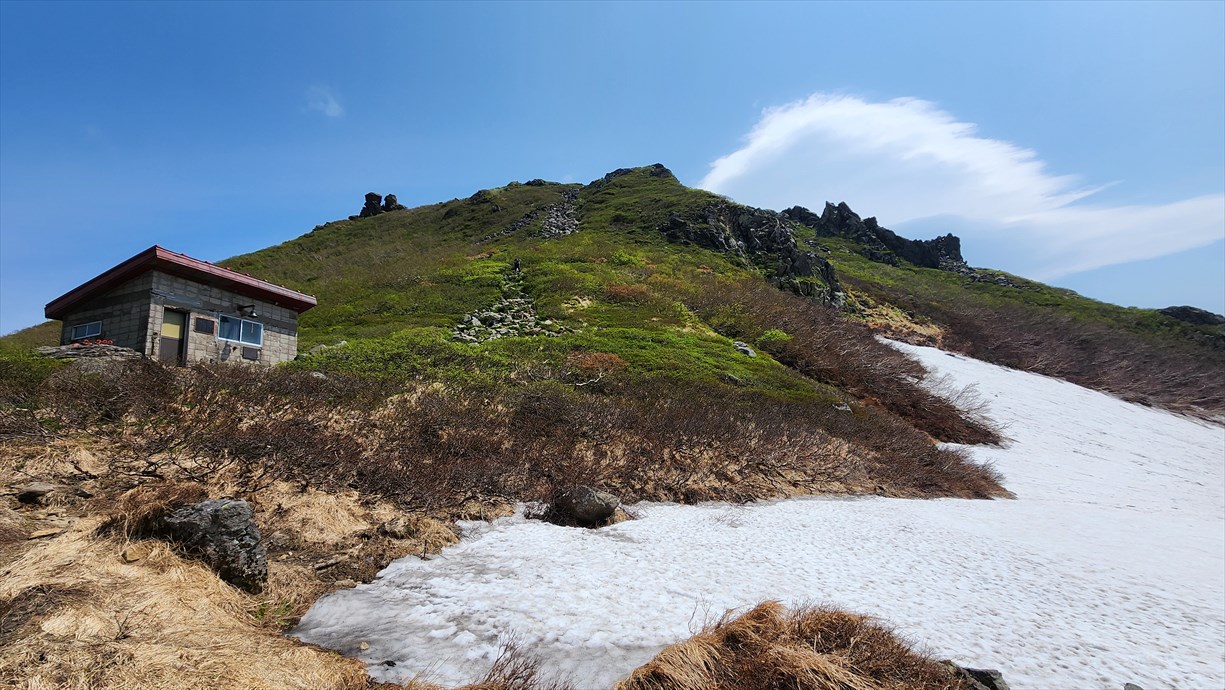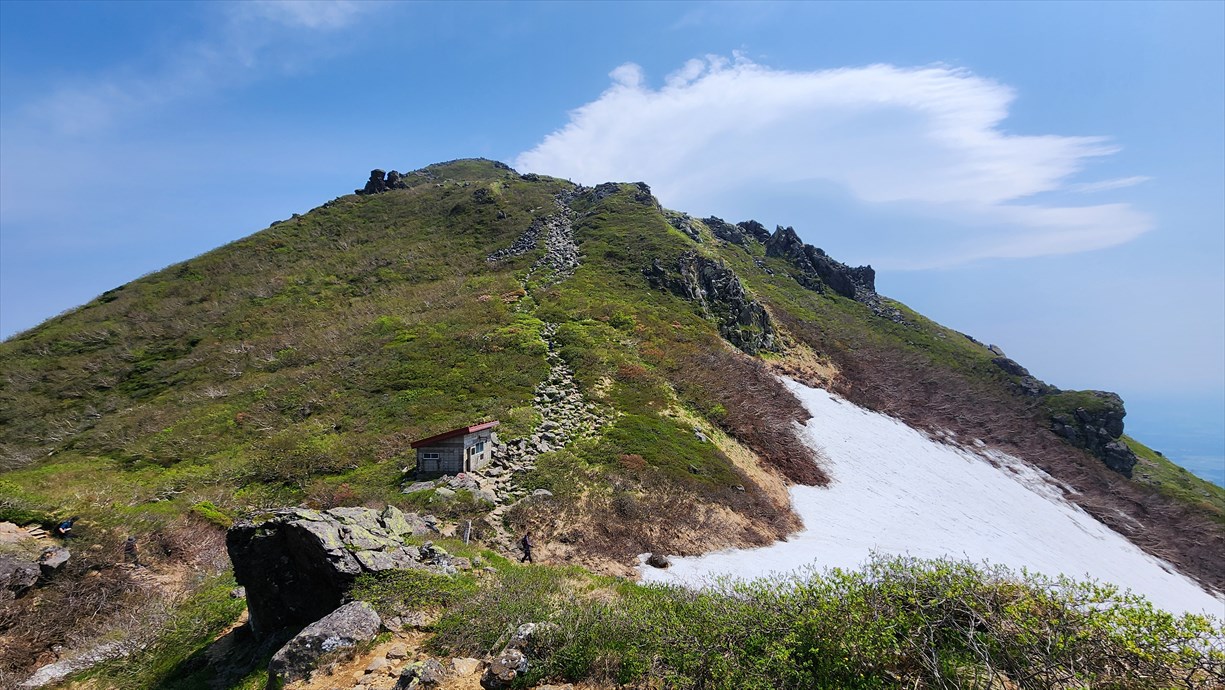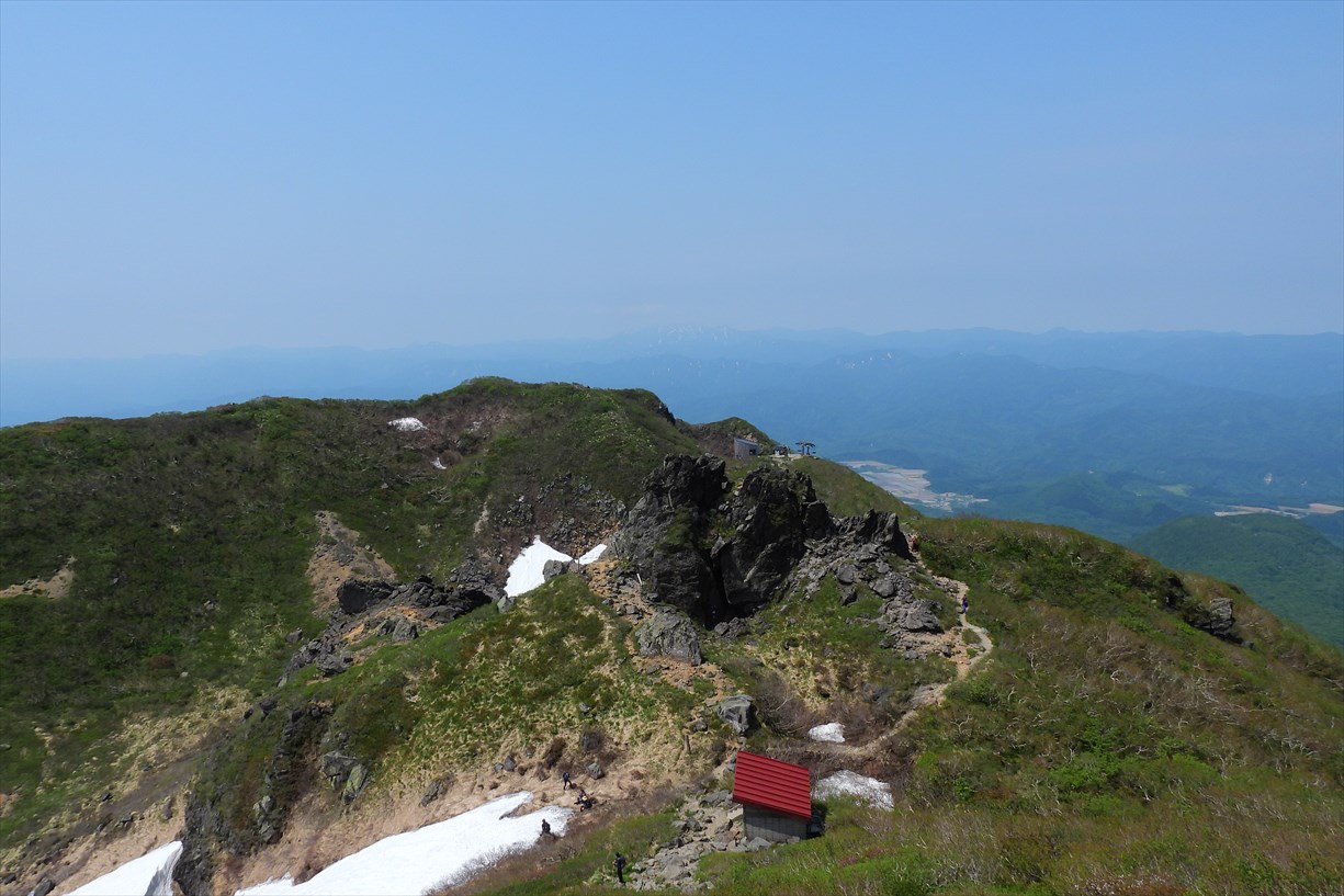 鳳鳴ヒュッテ&岩木山山頂 遭難碑から撮影 |