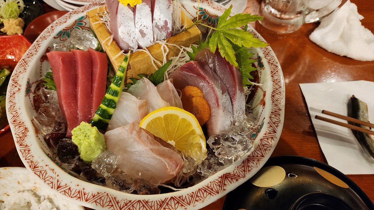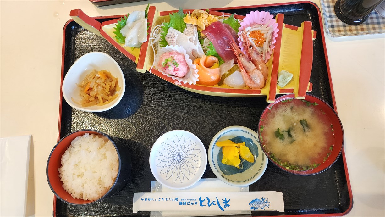 海鮮どんや・とびしま 1480円の舟盛り | ||||