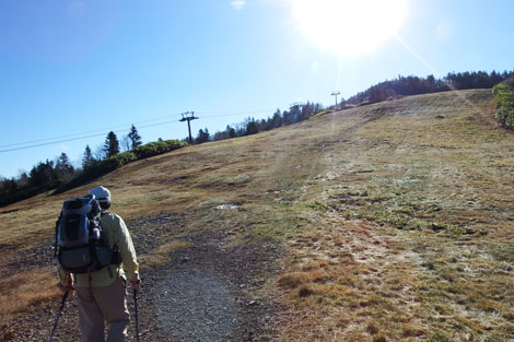 ゲレンデ最上部の岩菅山登山口 | 道迷いの心配は少ない | |||