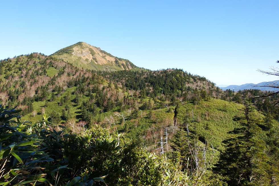 ゴンドラ山頂駅直下の高山植物園より岩菅山と裏岩菅山を望む | ||||