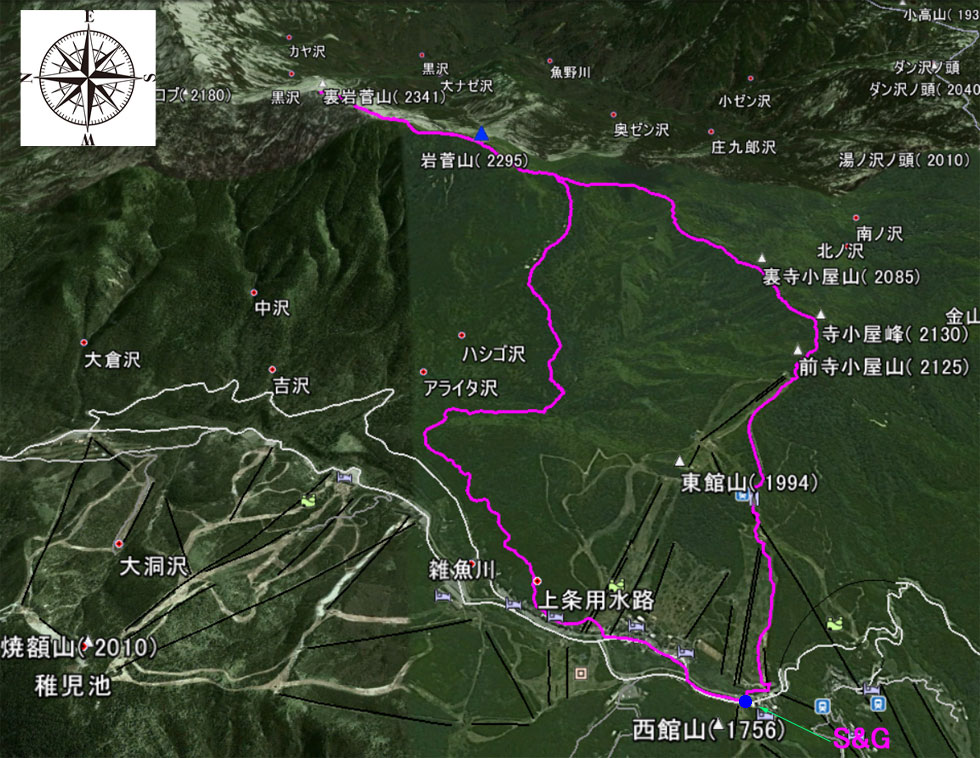 岩菅山・裏岩菅山鳥瞰図![]() |